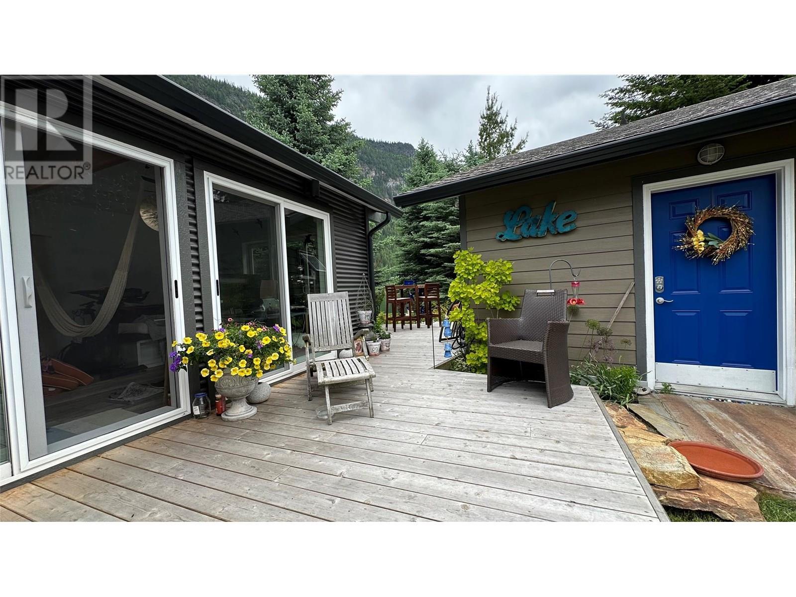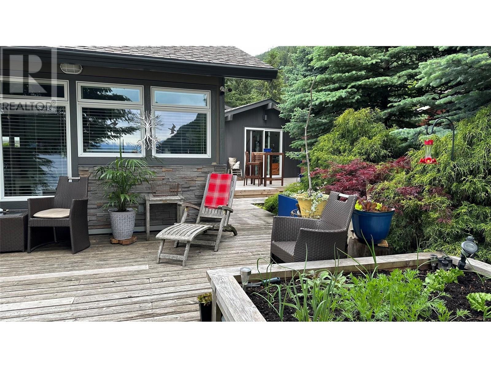Spectacular Waterfront Property in Lardeau, BC! Discover a unique opportunity to own a private waterfront property on Kootenay Lake in Lardeau, BC. This 16,600 sq.ft. lot features a 85' sandy beach, breathtaking mountain and glacier views, raised garden beds, variety of trees. Two separate accommodations: an 820 sq.ft. main home with a 400 sq.ft. cedar deck, and a 600 sq.ft. guest suite with a 340 sq.ft. deck. Both residences are thoughtfully designed with open-concept living spaces and modern amenities. The property includes underground utilities & sprinkler system, high-speed fiber optic internet, a backup generator, and two mooring buoys. With room to build a future dream home & garage, this property offers the perfect blend of tranquility and year-round outdoor recreation. Whether it's a seasonal getaway/escape from urban life, multi-family, income potential or a full time residence as it's being used now - this property offers the flexibility and convenience to live out your Kootenay Lake dream. (id:6769)
