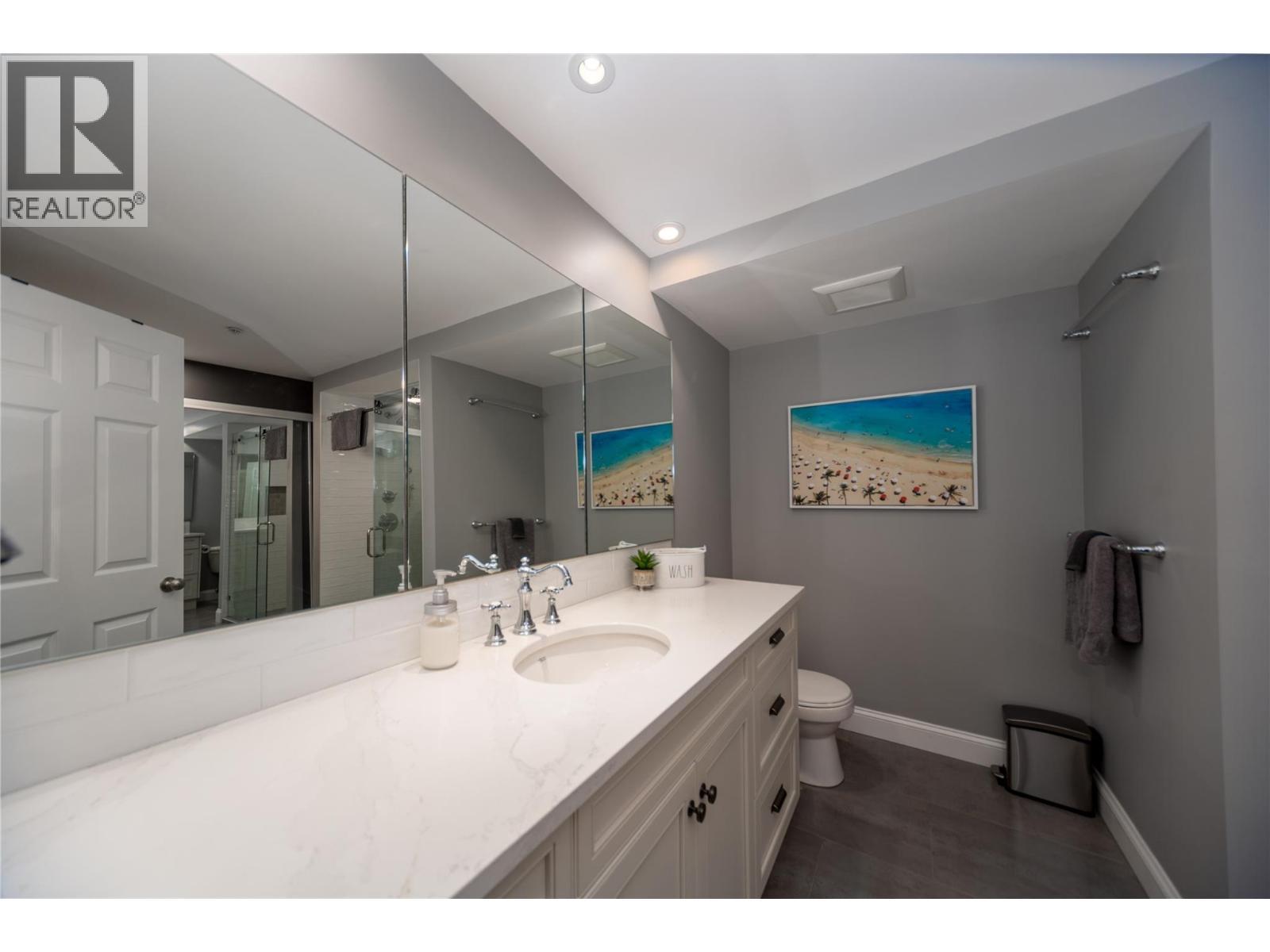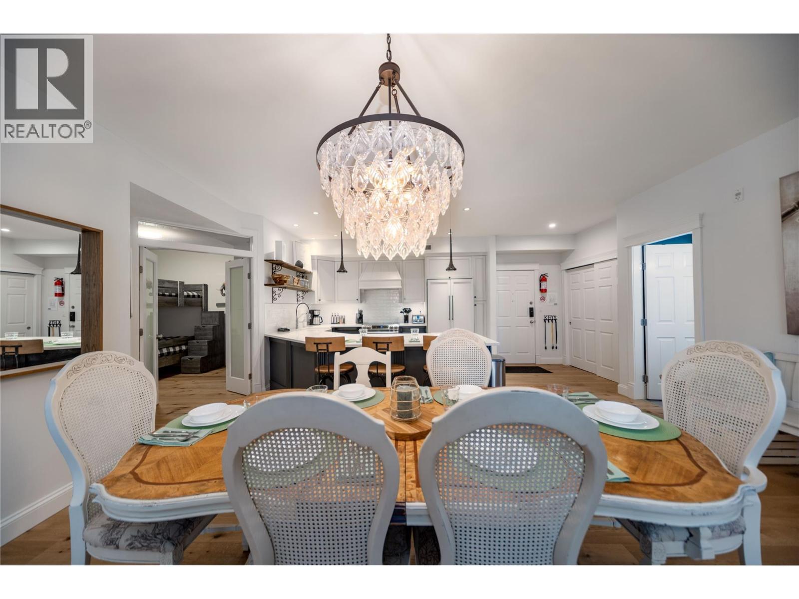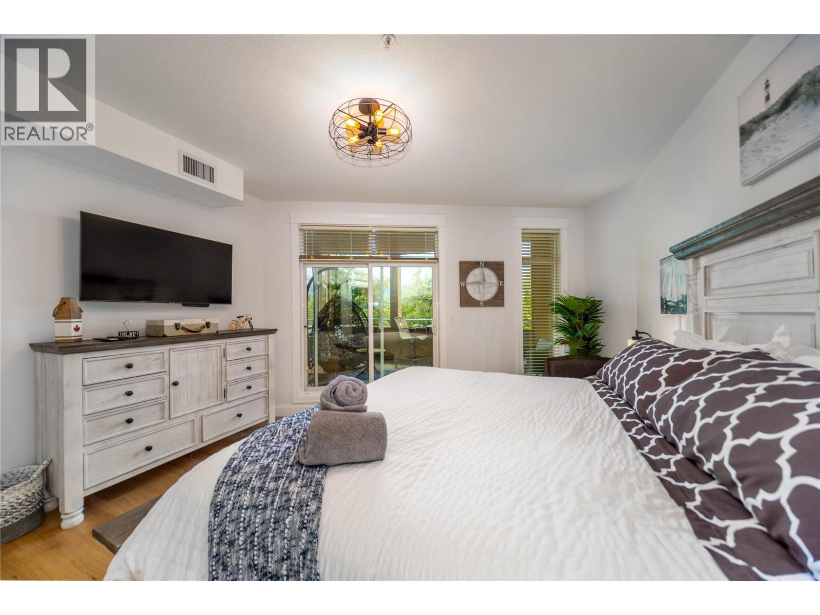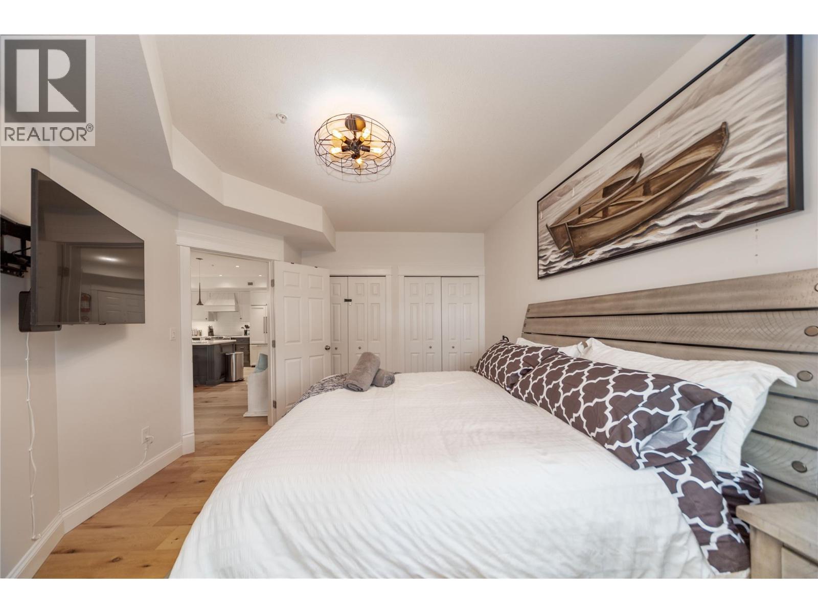 Renovated 3-bed 2-bath suite on the peaceful side of Discovery Bay, right on the shores of Lake Okanagan. With nearly 1,500 sq. ft. of thoughtfully designed living space, this home offers a rare combination of privacy, style, and location. Step inside to white oak engineered hardwood floors, a designer kitchen with custom two-tone cabinetry, quartz countertops, a Bosch whisper-quiet dishwasher, induction/convection oven, and updated lighting throughout. The open layout flows from the kitchen and dining area into the living room, where a tiled gas fireplace creates a warm focal point. Two private decks overlook the bird sanctuary and lush landscaping. Both bathrooms feature heated floors, with the primary ensuite showcasing a spacious walk-in shower. Residents enjoy premium amenities including two pools (one open year-round), two hot tubs, a sauna, fitness centre, and games room—all within walking distance to shops, restaurants, and the beach within the Cultural District. Secure underground parking is included. Pets allowed, 1 small dog or cat. (id:6769)