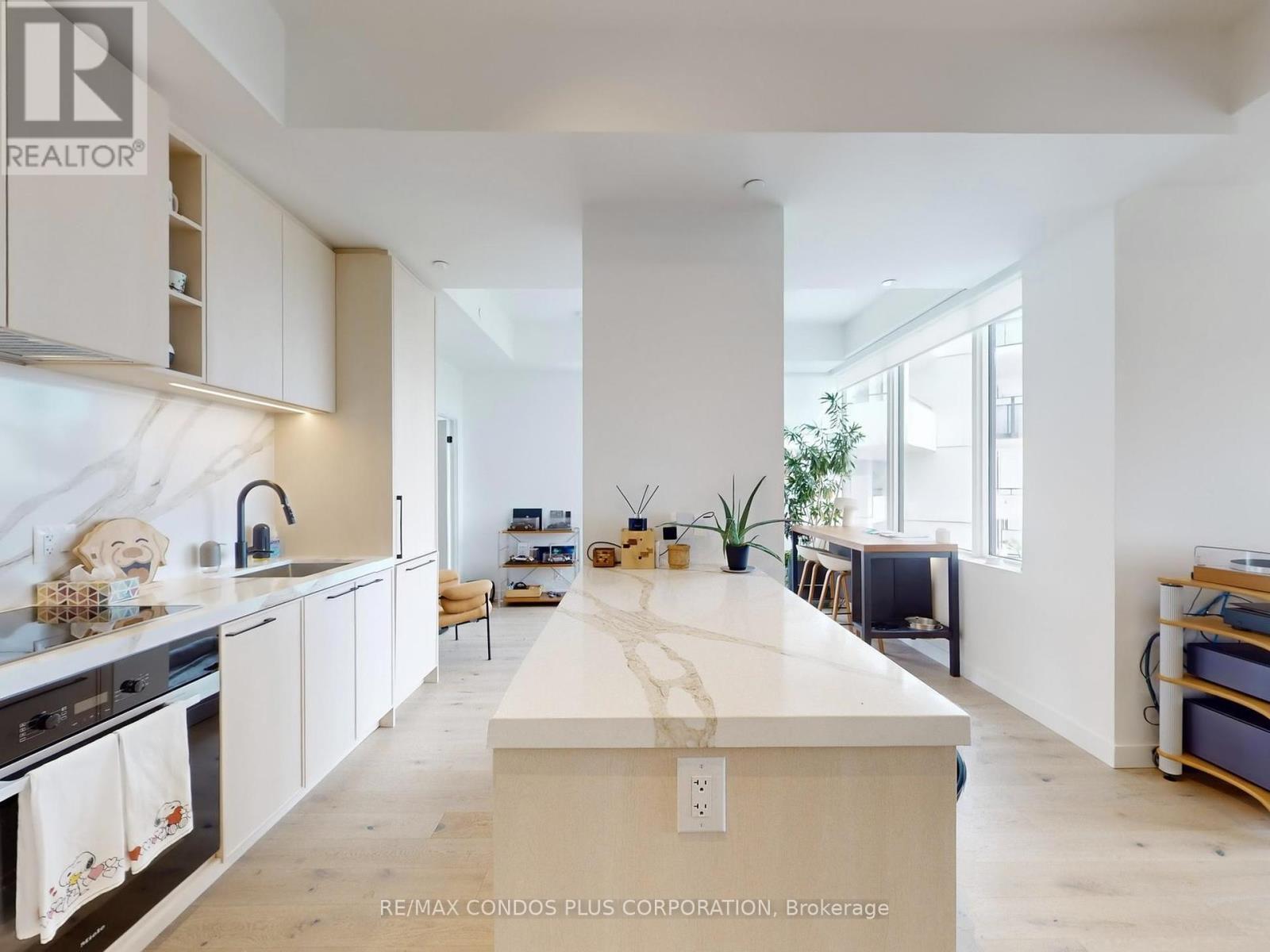 Be first to live in this stylish 2-bed, 2-bath residence at Queen & Ashbridge! Corner unit with 1140 sf of interior space, wonderful open concept floor plan, large south facing balcony with open and unobstructed park and lake views, and huge 331 sf terrace off dining room, perfect for indoor/outdoor entertaining. Modern interior with wide plank laminate flooring throughout, floor-to-ceiling windows, and 9 ft smooth finished ceilings. Large, beautifully appointed kitchen with loads of storage space, centre island, stone counters, and mix of integrated and stainless steel appliances . Spacious primary bedroom features a walk-in closet and spa-like 4-pc ensuite with double sinks. Steps to Woodbine Park, Woodbine Beach, and Ashbridges Bay Marina. Queen Streetcar is right outside the front door, along with countless restaurants, cafes, and shops. Enjoy premium amenities, including a warm welcoming lobby with concierge service, lounge, co-working space, roof terrace, and 5000 sq. ft. fitness centre complete with yoga and spin studios, steam rooms, and spa-style change areas. (id:6769)
