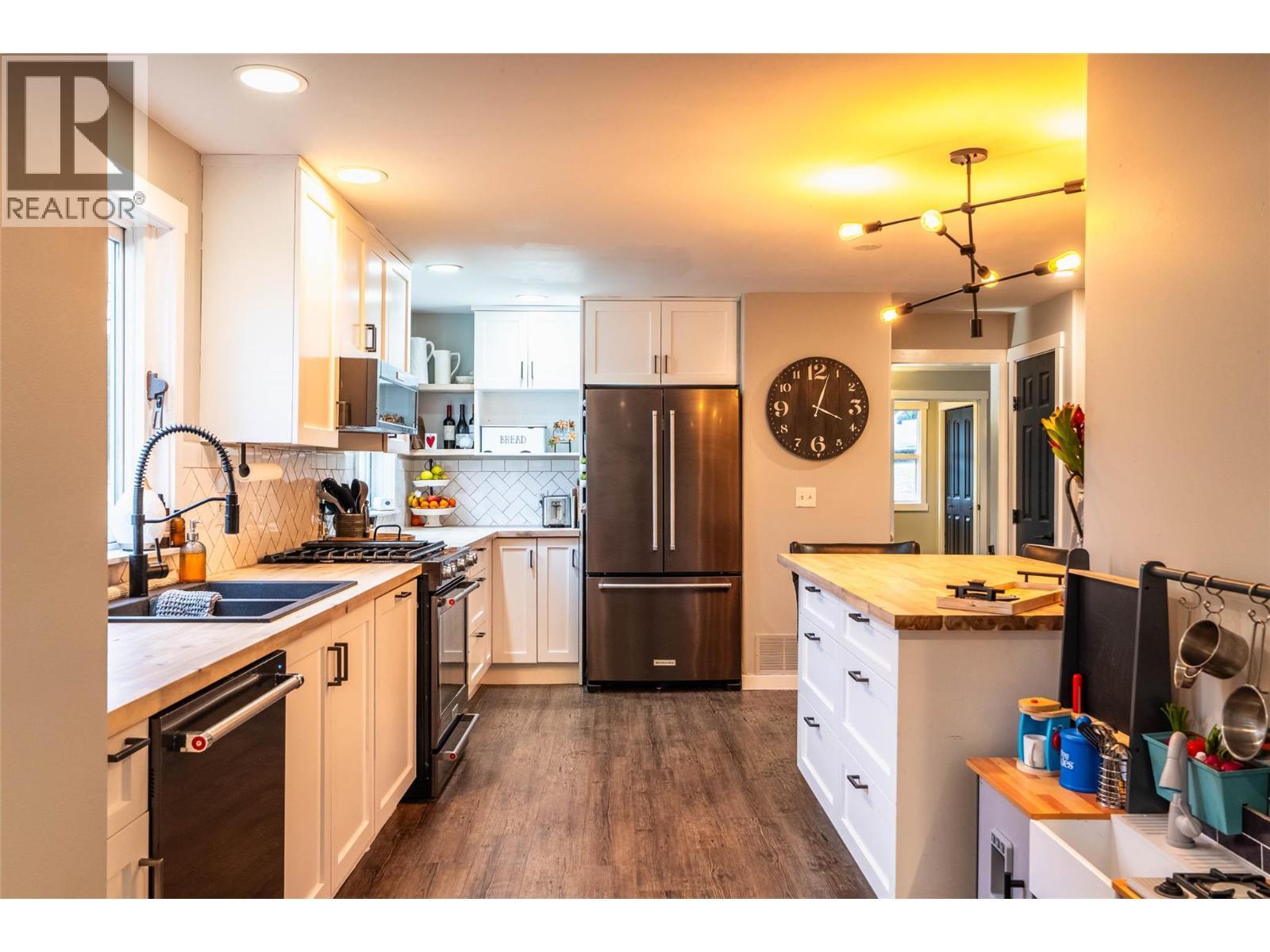Envision a life of unparalleled flexibility and timeless charm with this updated residence, a stunning fusion of 1913 heritage and modern luxury, perfectly set on a spacious 0.23-acre lot on a quiet street in Nelson's coveted Uphill neighbourhood, just steps from Lions Park. The main 4-bedroom, 2.5-bathroom home offers 2044 sqft of beautifully laid-out space for family living and entertaining. Step inside to a formal living room and a family room, anchored by a gourmet kitchen, renovated in 2020 with a large island. The entire main level effortlessly transitions to an oversized deck, presenting breathtaking, panoramic mountain views. Upstairs, the large primary suite serves as a sanctuary with a luxurious full ensuite. This unique property includes a separate 370 sqft 1-bedroom, 1-bathroom cottage, providing immediate valuable mortgage assistance or a private retreat. Major 2018 infrastructure updates—including a new roof, furnace, hot water tanks, and updated wiring—ensure turn-key peace of mind. The vast, private backyard is a blank canvas awaiting your vision, while extensive storage is available in a large shed and dedicated downstairs storage room. This is a rare opportunity to own a versatile family home in a great neighbourhood. (id:6769)