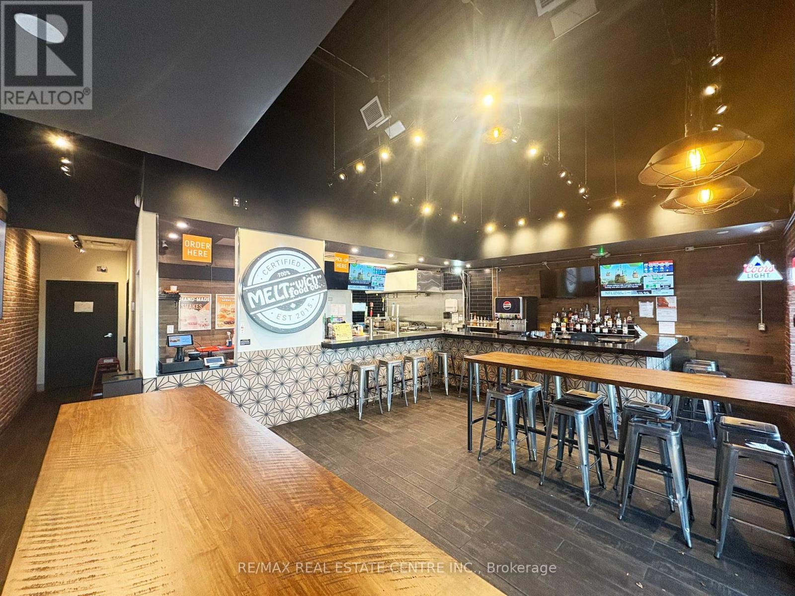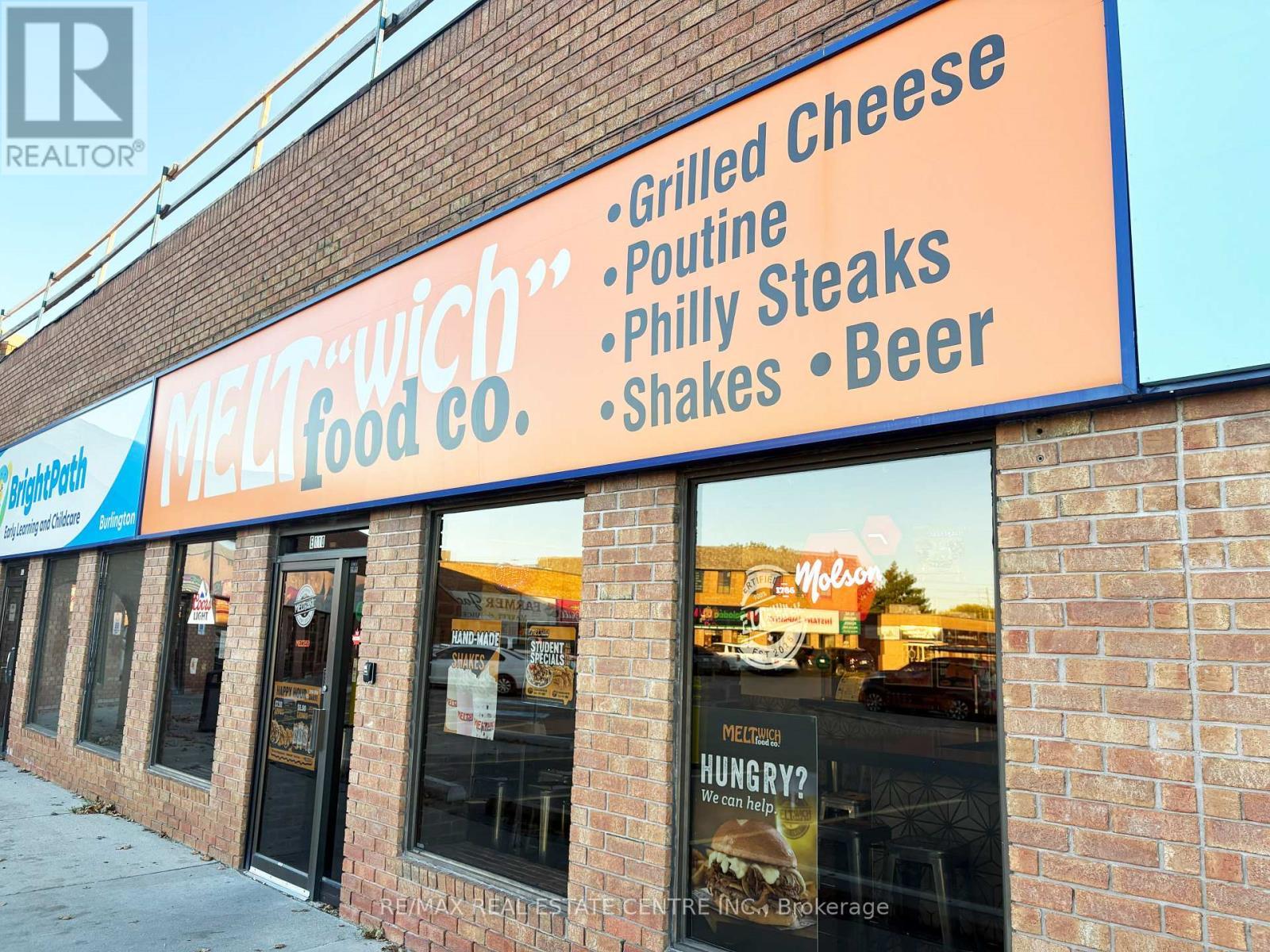 Turnkey opportunity to own an established Meltwich Food Co. franchise or step in with your own concept in a high-traffic retail hub just off the QEW, offering excellent visibility, strong footfall, and a loyal customer base. This 1,168 sq. ft. approx. Turnkey restaurant space is fully built-out and ready for immediate operation. Meltwich is known for its gourmet grilled-cheese melts, burgers, poutines, and milkshakes, with full franchise support and training. Alternatively, the versatile layout allows for rebranding or conversion into a new restaurant or retail business. The location is part of a bustling retail complex anchored by AAA tenants including McDonald's, Benjamin Moore, Medical Centre and Pharmacy, Burlington Public Library, CIBC Bank, Dental Care, Subway, Service Canada, and many more, ensuring a steady stream of visitors. The property features ample parking, prominent corner signage, and a bright, inviting interior suitable for dine-in, take-out, and delivery operations. A key highlight is the LLBO license, allowing the sale of alcoholic beverages to expand revenue potential. Leasehold improvements and premium chattels are included for a seamless transition. The lease is managed at $3,406 per month plus TMI and taxes, with a total monthly cost of $5,039.60, making it an attractive arrangement for a new operator. Located in a thriving, growing market with a dense residential and commuter base, this property permits a wide range of uses including restaurant, retail, personal service, office, medical clinic, convenience store, and fitness/recreation facilities, making it ideal for entrepreneurs to operate Meltwich or launch a new concept. Don't miss this rare opportunity to own a turnkey franchise-or create your own business-at one of Burlington's most desirable retail destinations. (id:6769)