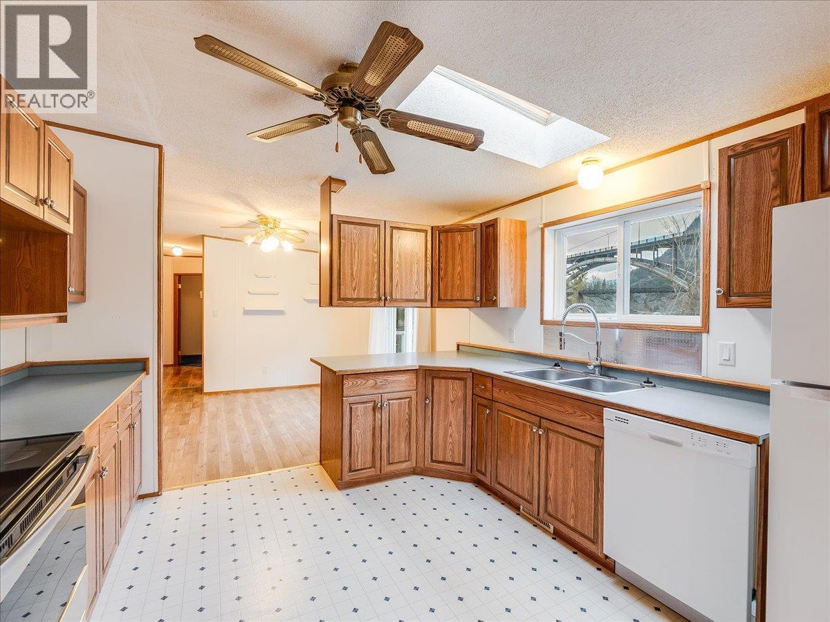 Welcome to peaceful riverside living in the desirable Kootenay River Mobile Home Park, a well-maintained 55+ community set along the scenic banks of the Kootenay River. This 1998 double-wide modular home offers comfortable, single-level living. The home features a bright and open floor plan with durable laminate flooring throughout the main living areas. The spacious primary bedroom includes a full ensuite bathroom and a walk-in closet, providing both privacy and convenience. Two additional bedrooms and a second full bathroom make this home ideal for guests, hobbies, or a home office. Step outside to enjoy the large sundeck, perfect for relaxing, entertaining, or taking in the peaceful surroundings. The property also offers parking for two vehicles and a storage shed. (id:6769)