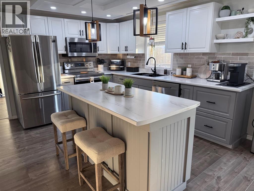 Stunningly renovated and meticulously maintained, this home will capture your heart the minute you walk in the door. Enjoy the comforts of one-level living while maintaining separate living and family rooms so the kids can have their own space to relax. Bring everyone together for family meals and game nights in the expansive eat-in kitchen with a abundance of cabinetry and generous countertop workspace. This home is brimming with natural light throughout, and the layout flows seamlessly, creating a truly serene living environment. A huge multi-level sundeck stretches across the front of the home, while a smaller back deck leads to a patio and firepit. Wait...there's more! An awesome, detached, heated double-garage is perfect for all of your projects and puttering, and two separate sheds offer great storage. All this sits on 4.6 acres of lawn, just a 5 minute drive from downtown. (id:6769)