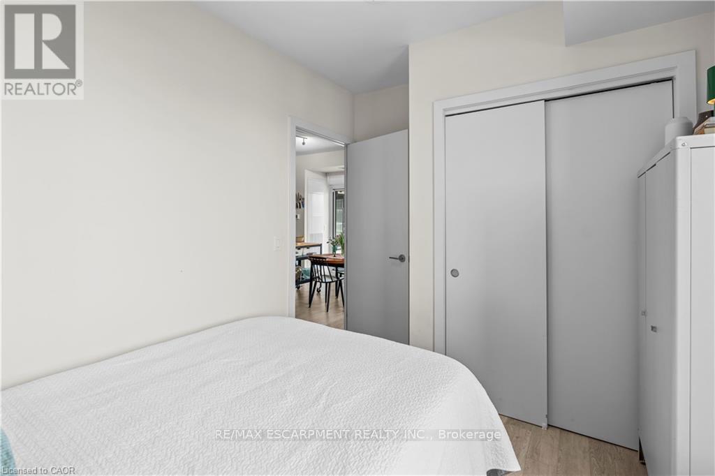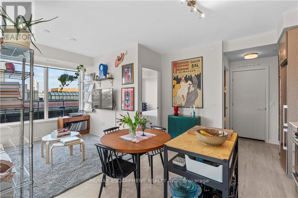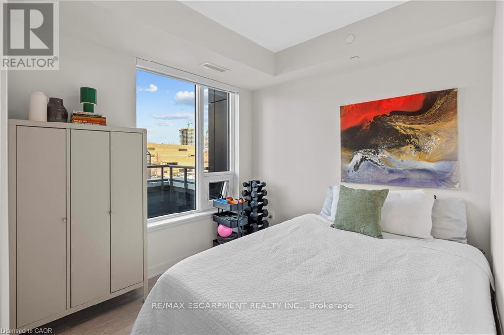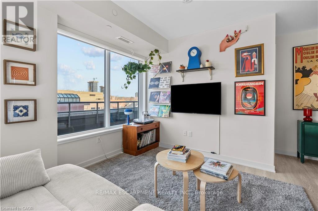 ONE OF ONE! This 4th floor corner unit cannot be replicated: the only 607sf terrace with North AND West exposure - enjoy space, privacy and a view. A floorplan designed with lifestyle in mind, starting with a generous entryway with front hall closet, perfect for welcoming guests. The primary suite is tucked away, featuring a three piece ensuite with glass shower and full closet, the perfect hideaway for busy professionals who value sleep. The open concept main living space comes pre-decorated with floor to ceiling windows with inspiring city views, outfitted with privacy shades if that's more your style. Tall ceilings and neutral floors make a perfect backdrop for any decor, and the open floor plan makes for endless furnishing opportunities. This space is anchored by an efficient kitchen finished in light oak cabinetry with a sleek penny tile backsplash, modern stainless appliances, stone counter and undermount sink. A second full bedroom with closet, and a stylish 4 piece bath ensure this space will work for any lifestyle. Sold with 1 underground parking (close to the stairs!), and 1 locker. Added bonus: roof top patio with bbqs, party room, full executive gym, pet spa - complimentary amenities to enjoy! (id:6769)