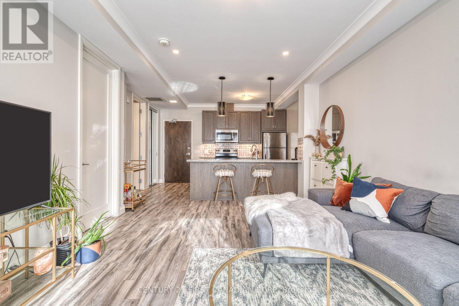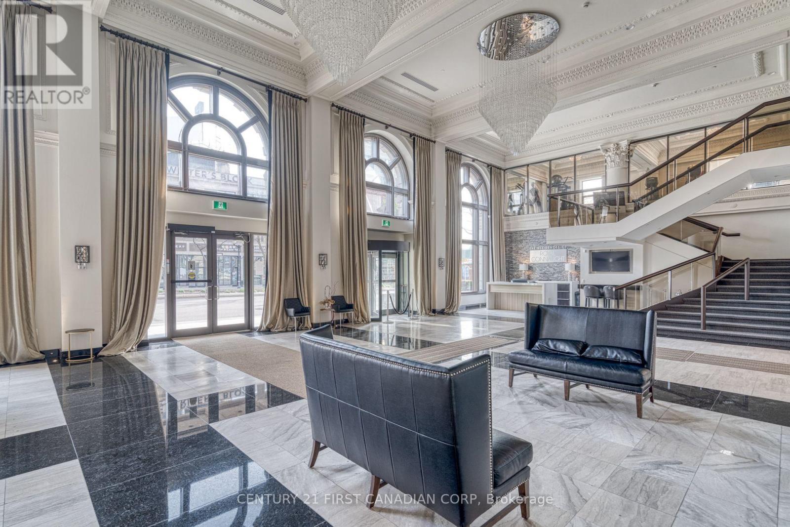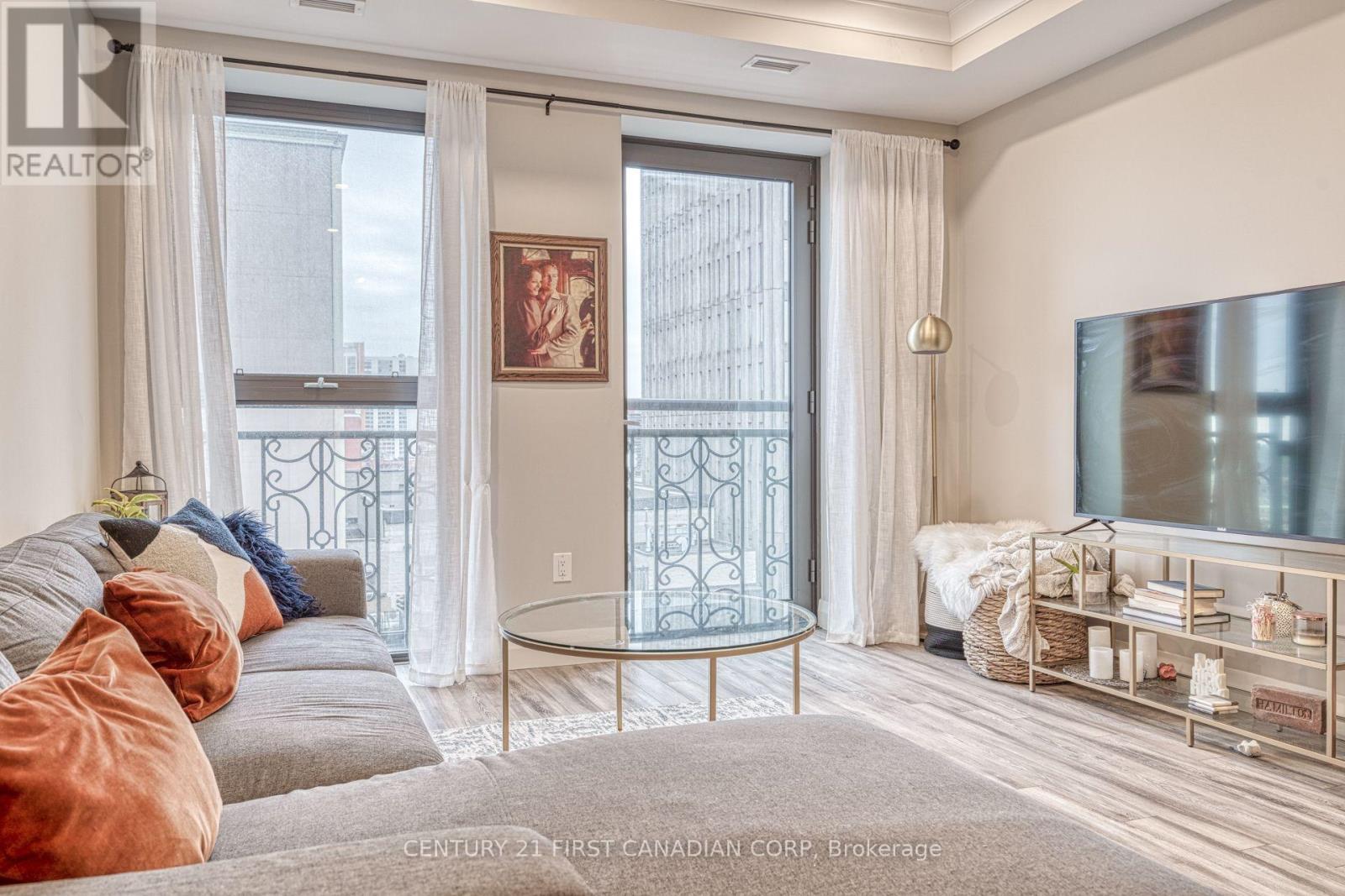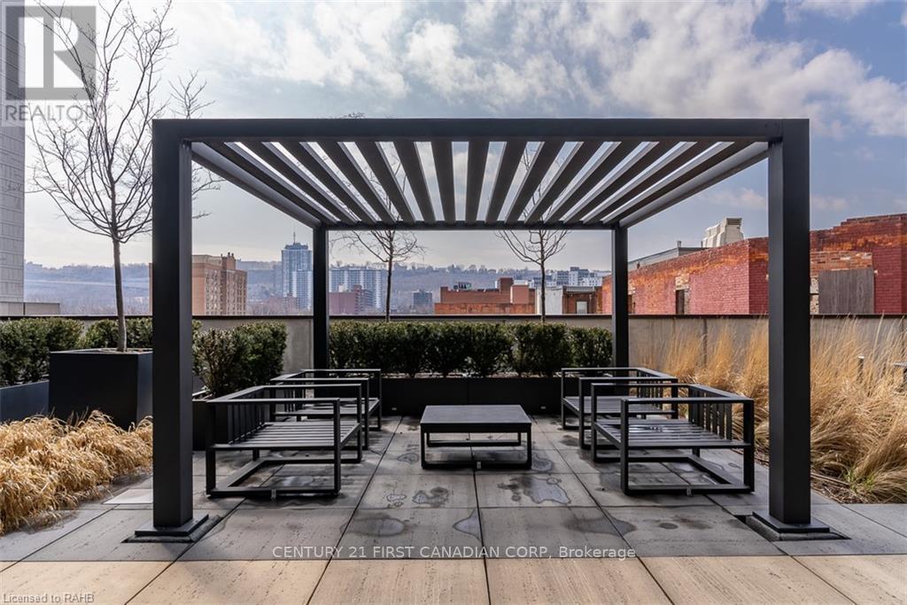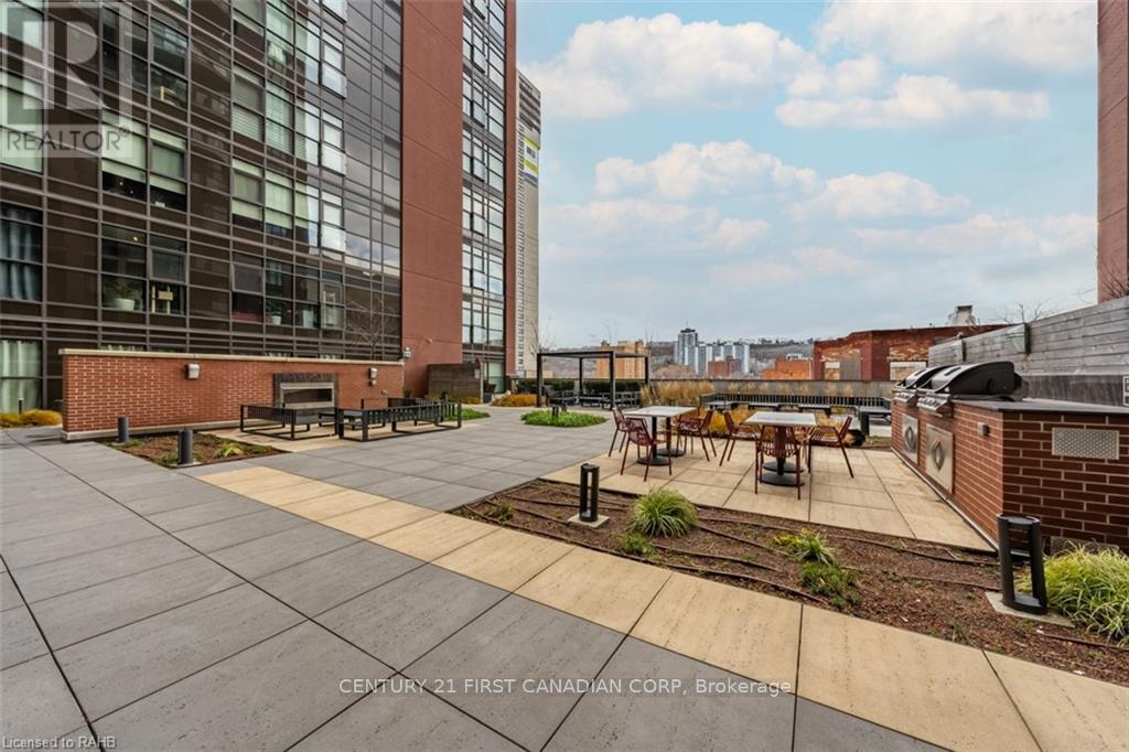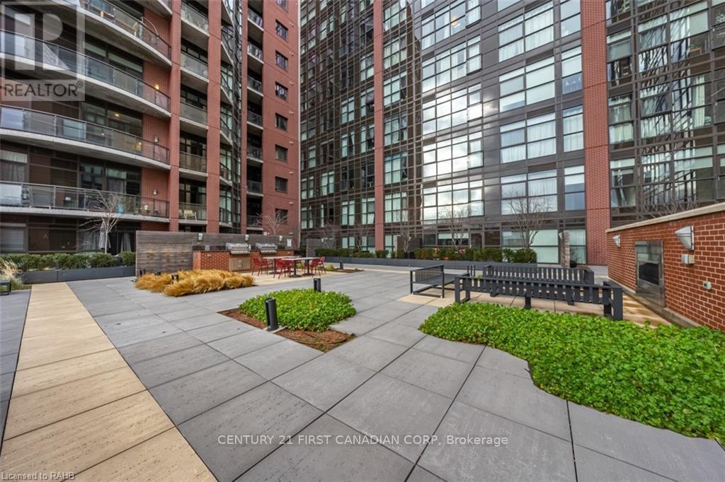 Check out this Absolutely Extrodinary 1 Bedroom, 1 Bathroom Condo in the Historic Residence known as The Royal Connaught! This Highly Sought-After Building is located in the heart of Downtown and Features an Abundance of Extravagant Amenities such as a: Theatre (Media) Room, Games Room, Yoga/Fitness Centre, Party Room, as well as a Rooftop Terrace with Cabanas, a BBQ and Outdoor Firepits! This particular unit Boasts many Superior Upgrades not found in all of the others, including (but not limited to): 9' Ceilings, 8' Doors, Crown Moulding, a Soaker Tub, Premium Kitchen and Bathroom Cabinetry and Tile. Pride in ownership is evident as the space has been Stunningly Styled and Meticulously Well-Maintained. Sharpen up your Chef skills in the Gorgeous Kitchen which includes Stainless Steel Appliances, Oak Cabinetry with Under Cabinet Lighting, Granite Countertops, High-End Backsplash, an Oversized Island with a Breakfast Bar and Designer Pendant Lighting above. South facing with Fantastic Sun Exposure that Cascades throughout the Open Concept Floor Plan, made perfect for Entertaining, with Breathtaking City Views from your Juliette Balcony. Not to mention the Convenient In-Suite Laundry, Parking Space, Locker, and 24hr Security. Immerse yourself in the Downtown Culture, Steps From: GO Transit, Public Transit, Gore Park, Fine & Casual Dining, Shopping, Nightlife, the Hospital and More! Opportunity has come knocking, answer the door! (id:6769)