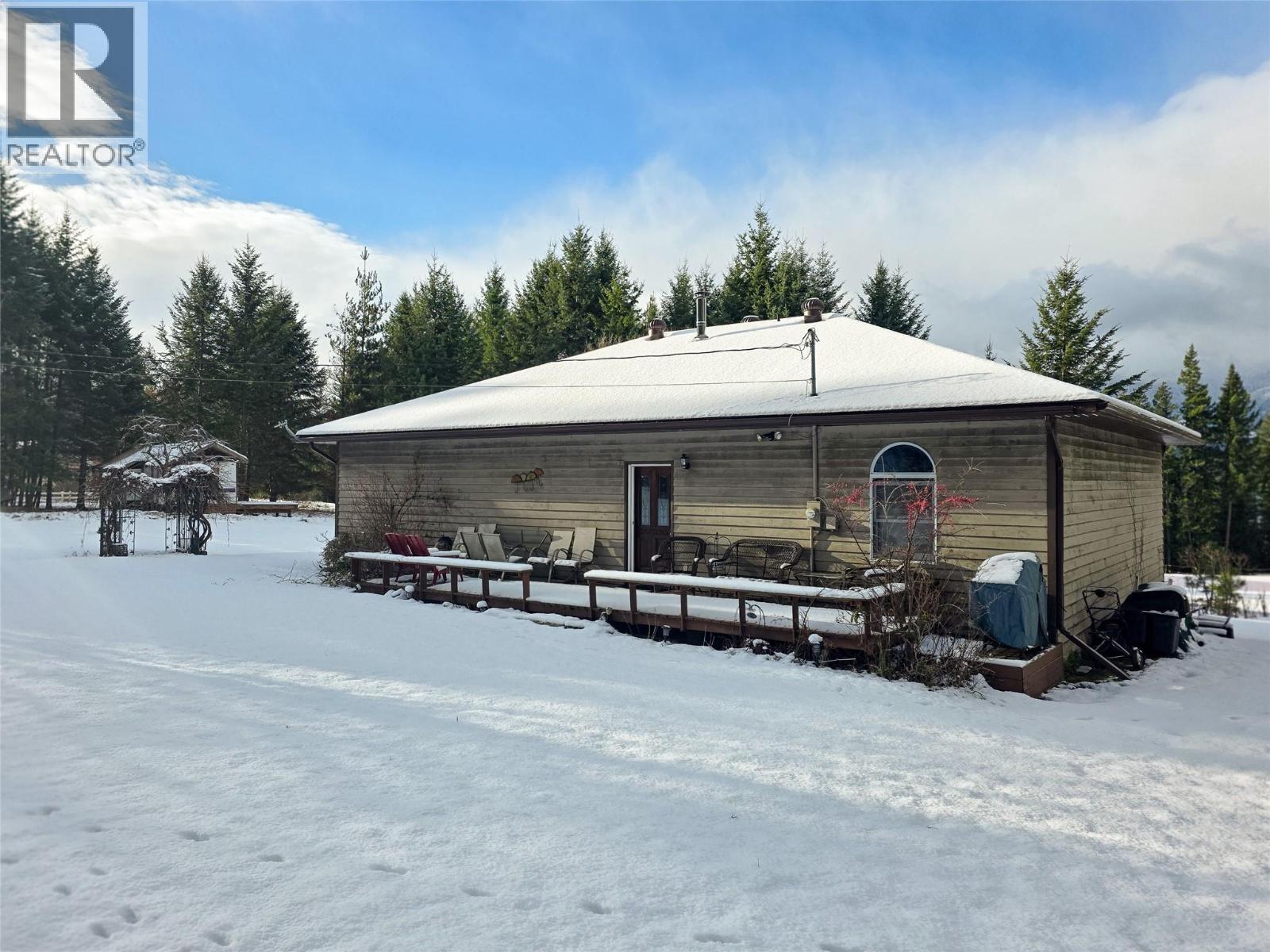 Situated just over an acre of land on the edge of town and along the fairways of the Riondel golf course this home and property are a unique offering in the Riondel market. The house consists of 2 bedrooms, and 2 full bathrooms spread out over 1500 sq/ft of single-level living with a large, functional, living space ideal for gatherings with family and friends. The views of the fairways and mountains are near perfect from everywhere in the house thanks to the huge number of floor-to-ceiling windows facing West and the back covered deck is the ideal spot to further take in those views. Recent improvements include a new front deck, a freshly painted exterior and a newer roof. The property is just over an acre and nicely treed from the road to provide privacy and there's ample yard space at the house to accommodate additional guest RV's or build a garage/shop ect. This home and property will not disappoint, so be sure to schedule your viewing today. (id:6769)