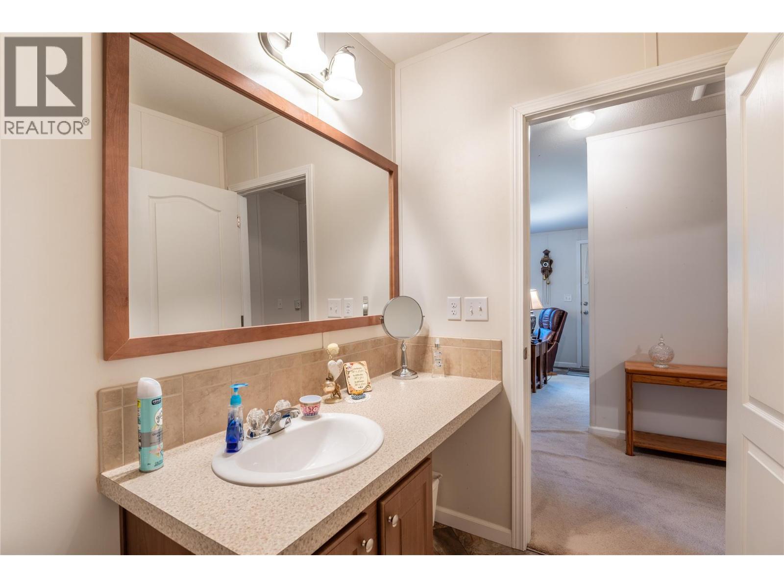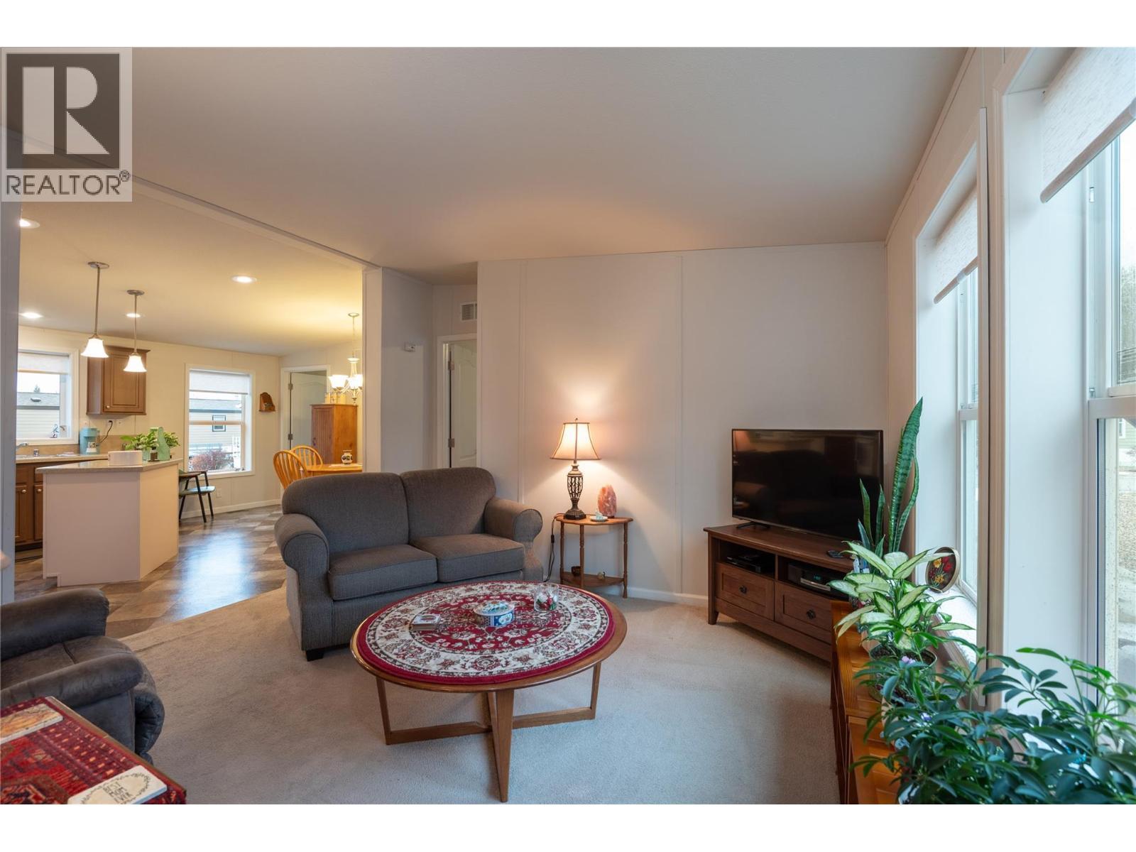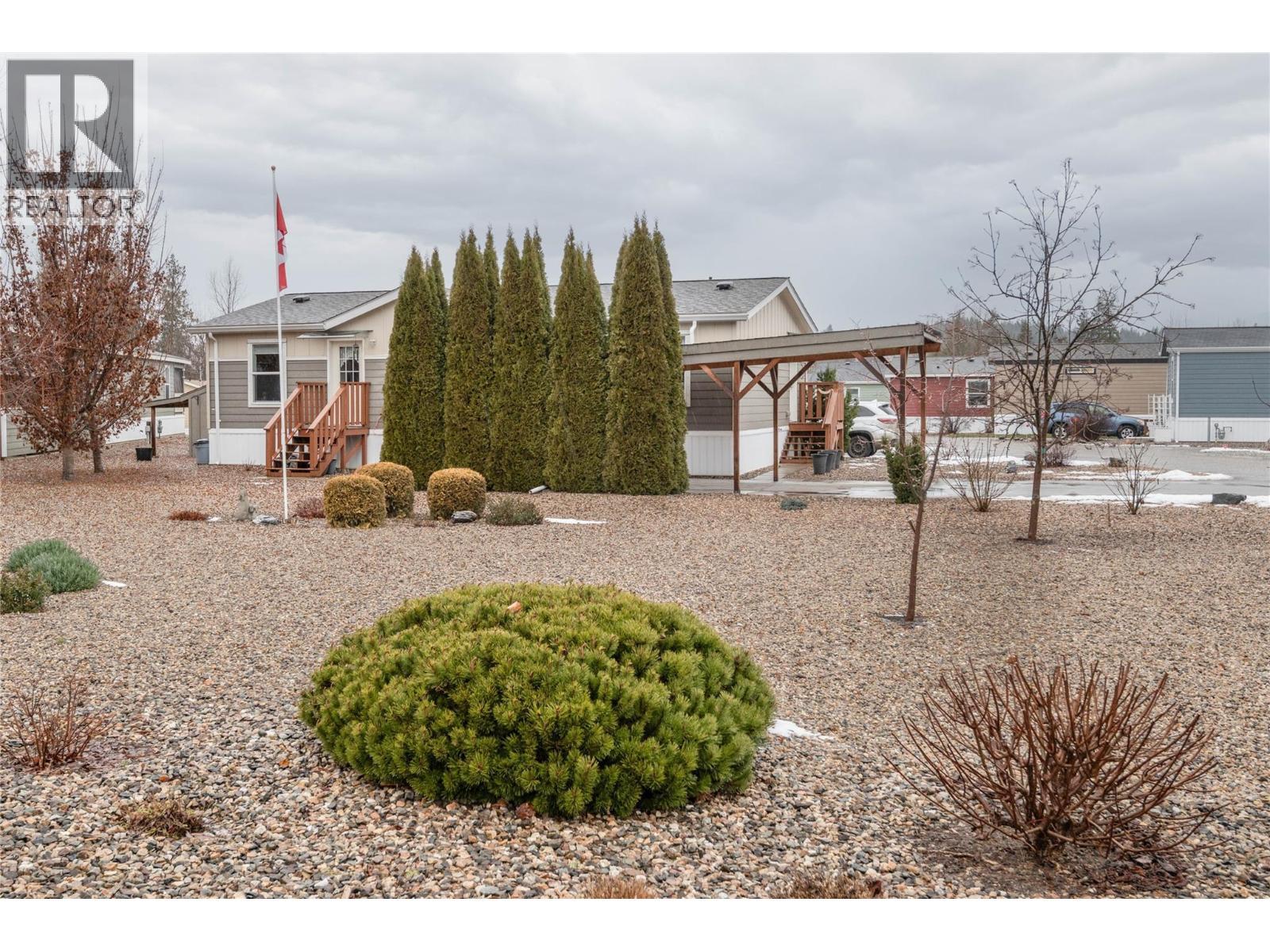Welcome to Lakeland Mobile Home Park, where you will find this custom designed 2015 home read to fit your needs. Currently featuring 2 beds and 2 baths, the den could easily be converted into a 3rd bedroom if needed. The heart of your home is an open concept design of your kitchen living and dining areas creating a natural flow for gathering with family and friends. Plenty of cupboard and counterspace and an island for some extra prep room and storage. To ensure privacy, the primary suite—complete with its own full ensuite—is tucked away on the opposite side of the living area from the secondary bedroom and den. Enjoy a large, maintenance free yard that provides some privacy and options for plans needs and uses. A single-car carport gives sheltered parking with additional driveway space for two more vehicles. At the rear of the carport, a private patio offers a cool retreat for summer evenings. Two dedicated sheds for storage of tools, toys and seasonal needs. Practicality continues at the back entrance, where a dedicated foyer serves as a convenient mudroom for coats and shoes. Beyond the home, you are perfectly positioned just a short drive from uptown shopping, local schools, and the recreational hub of Canoe, with easy access to Shuswap Lake and several nearby golf courses. (id:6769)