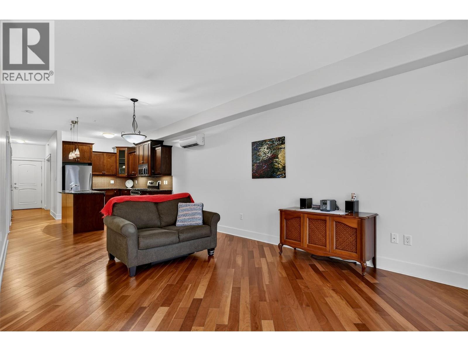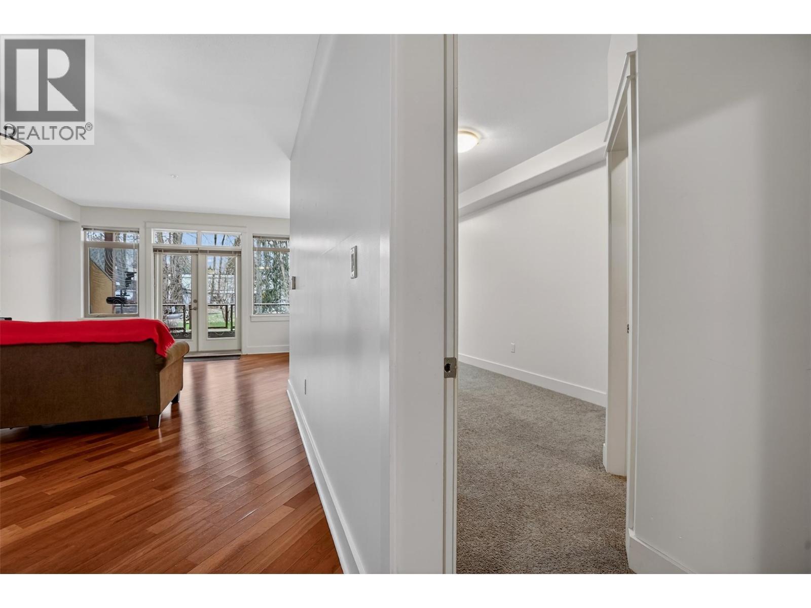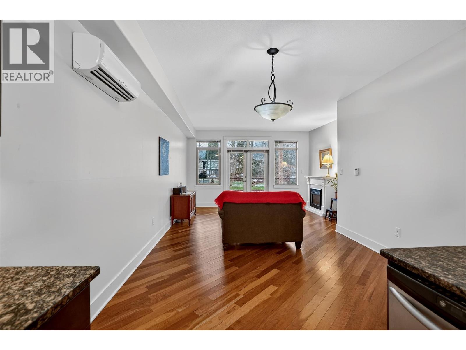 Experience sophisticated living in this exquisite main floor unit, ideally situated in the much loved Fairview neighbourhood of Nelson. This immaculate 1 bedroom plus den residence is a true gem, featuring a comprehensive upgrade package that defines modern elegance. Revel in the warmth of cherry wood cabinets and rich hardwood flooring, complemented by a gourmet gas range and granite countertops. Located on the ground floor with separate entrance will give you total privacy and easy one floor living. This thoughtfully designed space with overheight ceilings is equipped with air conditioning for your comfort and an electric fireplace that adds a touch of coziness. The unit boasts a private walk-out covered patio with gas BBQ hookup, seamlessly connecting you to the meticulously landscaped grounds, perfect for serene outdoor living. Included are secure underground parking and a separate storage locker, ensuring your convenience and lifestyle needs are met. Residents enjoy exclusive access to a beautifully appointed common meeting room and washroom for events. Indulge in a lifestyle that merges luxury with recreation, all within moments of the stunning lakeside setting, walking path and the famous L and C French bakery cafe. Don’t miss the opportunity to claim this exceptional residence as your own. (id:6769)