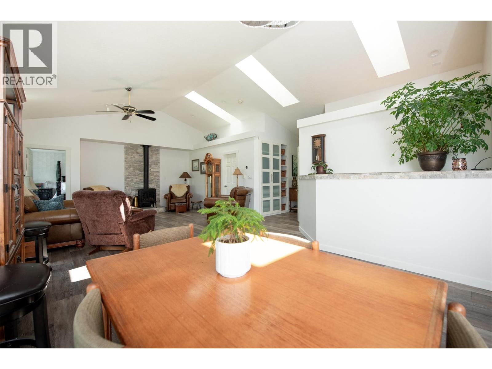 Discover your dream retreat on a private and quiet .63-acre lake view lot. New roof (2023), 10 new windows on main floor, flooring, and self-contained two-bedroom walkout suite! (Over $100,000 spent on renos in the last three years). This home offers lake views and natural light through vaulted ceilings and skylights. Custom kitchen with walk-in pantry and breakfast nook. Great room features Jotul gas fireplace, new hearth, dining area, and living room. Master suite with deck access, walk-in closet, and ensuite bathroom with Neptune tub and double sinks. Second bedroom ideal as den or guest room with Murphy bed. Daylight suite offers modern amenities and lake views. Features include: Jotul gas fireplace, Sound-deadening insulation - New heat pump - Updated appliances - Refinished deck and stairs - Insulated garage doors - Fire-smart clearing -Heated/cooled triple garage with workshop, RV & boat parking. Fenced yard with room for additional shop, plus private beach and boat launch access! (id:6769)