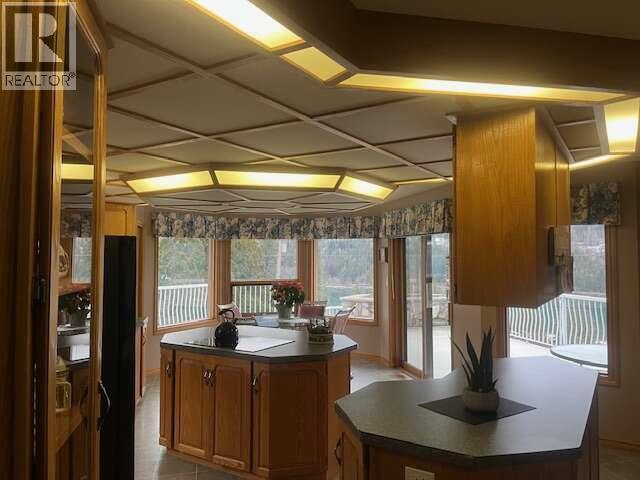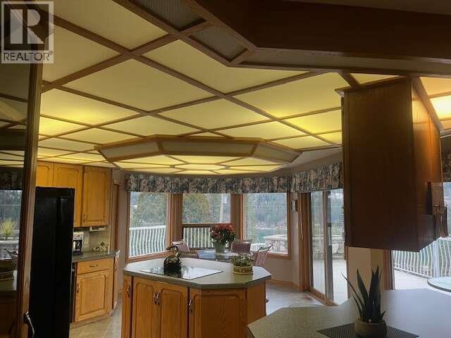 For more info, please click Brochure button. Beautiful 3-level home offering approximately 4500 sq ft of finished living space on a .92-acre landscaped lot with southern exposure & unobstructed 200-degree views. The home features a stucco exterior, asphalt roof & upgraded attic insulation. Heating systems include geothermal with air conditioning, baseboard heat, a wood heater & a wood-burning fireplace. Additional highlights include central vacuum, community spring-fed water, and 200-amp electrical service. The 1650 sq ft main level offers a split-level layout with a spacious living room featuring a custom rock fireplace, formal dining room, large kitchen with breakfast nook & 2 islands, office/den, laundry room, half bath, foyer, and access to a large deck. The 1200 sq ft upper level includes a generous primary bedroom with private deck, walk-in closet, and full ensuite with jetted tub and separate shower, along with two additional bedrooms & a shared full bathroom. The 1650 sq ft lower level features a self-contained unregistered two-bedroom full suite, separate entrance, with full kitchen, living and dining areas, full bathroom, cold room, storage, furnace room, and ground-level entry. An attached two-car garage completes the home. The property also includes a detached 32' x 48' insulated workshop with 2 bays, 100-amp service, wood heater, propane infrared heater & half bath. The yard features a fenced vegetable garden, in-ground irrigation & a fully paved driveway. (id:6769)