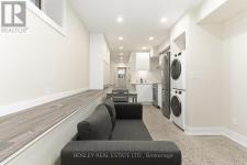 Step into a beautifully newly completed residence in Toronto's vibrant East End. This stylish, fully upgraded basement suite offers over 500 sq. ft. of thoughtfully designed, light-filled living space within a semi-detached home. All renovations have been completed to code with proper permits and inspections by governing authorities. Careful attention has been paid to every detail to ensure modern comfort, functionality, and sleek design. Although located on the lower level, refined finishes and an intelligent layout ensure it does not feel like a typical basement. Enjoy in-floor radiant heating beneath smooth concrete flooring, providing cozy warmth in winter while naturally regulating temperature in summer. The unit is approximately 30% above grade and benefits from excellent natural light through front, side, and rear windows, enhanced by recessed lighting and soft neutral tones. The open-concept kitchen features quartz countertops, contemporary cabinetry, and an ideal layout for entertaining. The well-planned floor plan includes one generous bedroom, a study nook or additional storage area, a modern three-piece bathroom, and ample storage throughout. Additional highlights include private, brand-new ensuite laundry (not shared), separate gas and hydro meters for full utility control, a new furnace, central air conditioning, and an on-demand power-vented hot water system. The unit also features a brand-new kitchen, bathroom, appliances, and fixtures. furniture shown in photos may be leased with the unit. City street parking permits are available at a reasonable rate. Rent: $1,550/month plus utilities (heat, hydro, internet/cable) (id:6769)