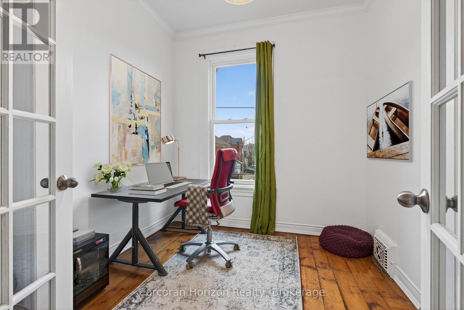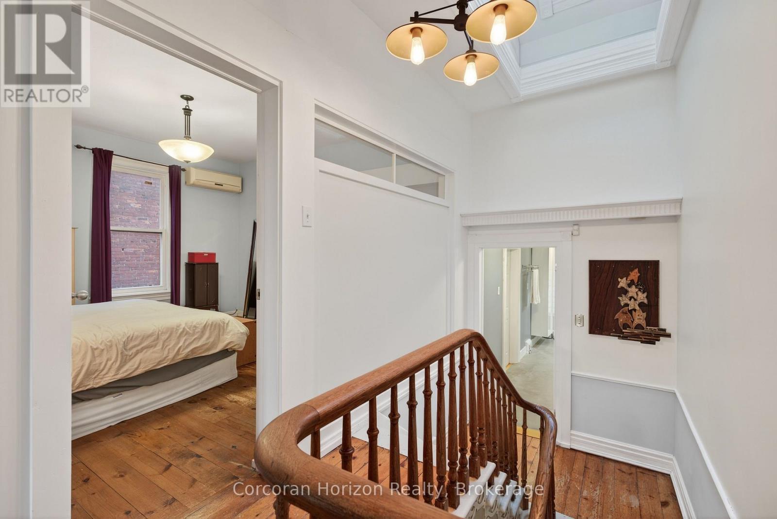 Step through the front door of this Victorian semi and prepare to be surprised - this all-brick beauty is MUCH bigger and more captivating than it appears! A dramatic entry foyer with soaring ceilings welcomes you into a home that radiates personality and warmth. The main floor offers an impressive sense of scale: generous living and dining rooms perfect for hosting, plus a huge updated kitchen with a double-width stainless steel fridge and room to truly cook, gather, and live. A convenient 4-piece bath and a high, dry basement with side walk-out add everyday practicality. Upstairs, character takes centre stage. Rustic wide-plank pine floors, full of story and charm, lead past a skylight that pours natural light down the stairwell. The spacious layout includes a large bedroom, a cozy office/bedroom, and a remarkably generous primary suite that flows into a connected den. From here, step out onto your covered balcony - an intimate, elevated hideaway perfect for morning coffee or late-night unwinding. The stunning renovated bathroom brings modern luxury with an all-glass shower, concrete-style flooring, and in-suite laundry. The finished third-floor loft completes the home with an inspiring open-concept space ideal for a studio, bedroom, or creative retreat. Outside, the fully fenced yard is an urban oasis: a large deck for entertaining, a charming side courtyard tucked under the balcony, and a converted garage for great storage. A rare two-car driveway is the kind of bonus you almost never find here. With more than $70,000 in thoughtful improvements - roofing, wiring, masonry, moisture protection, a full bathroom renovation, and numerous cosmetic upgrades - this home blends historic soul with modern comfort. All of this sits steps from the energy of James North's arts and dining scene, the West Harbour GO Station, Bayfront Park, and the waterfront. It's the perfect mix of vibrancy, charm, and spacious downtown living - a truly one-of-a-kind Hamilton home. (id:6769)