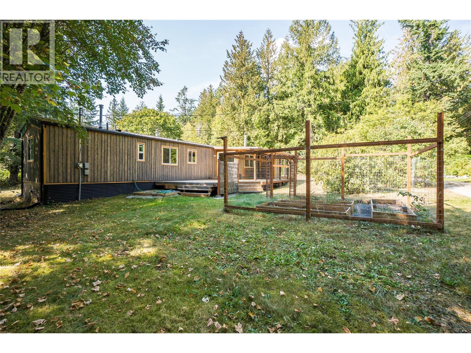 Updated and inviting, this comfortable 3-bedroom, 2-bath de-registered manufactured home sits on a level 0.63-acre parcel in the desirable Six Mile area on Nelson’s North Shore. Extensively updated, the home features a bright, open layout with plenty of natural light and a cozy gas stove. An addition expands the living space with a spacious living room, dining area, and access through sliding glass doors to a generous 300 sq. ft. deck—perfect for relaxing or entertaining. Outside, you will find a great yards, a large attached carport plus a separate RV carport (30' x 16' with 12' clearance), and a 16' x 24' detached insulated workshop. There is a fenced garden, a treehouse and good yard spaces. Conveniently located just 10 minutes from downtown Nelson and within walking distance of Six Mile beach. (id:6769)