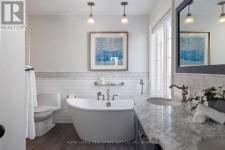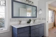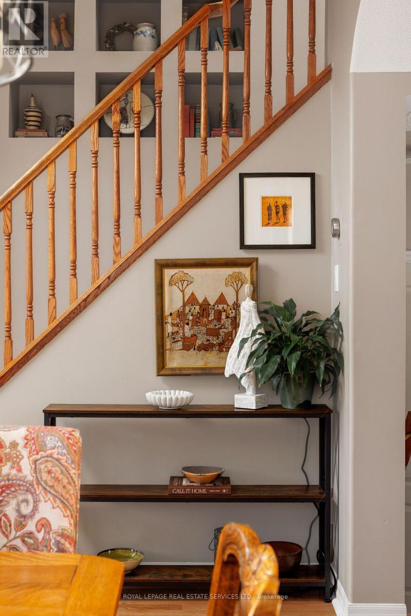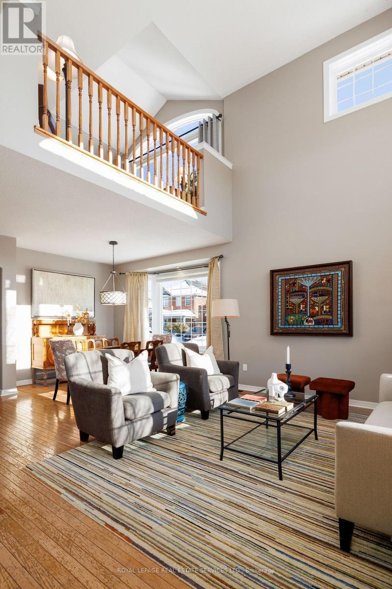 Beautifully maintained and updated Mattamy-built 'St Andrews' model home for sale in Oakville, ideally located on a private, pool-sized corner lot in the highly sought-after West Oak Trails community. Set within a top-rated school catchment with several schools within walking distance, and surrounded by parks, playgrounds, and scenic trails, this is an ideal family-friendly neighbourhood. Minutes to Oakville Trafalgar Memorial Hospital, shopping, dining, and everyday amenities, with quick access to the QEW, 407ETR and GO Station for commuters. Professionally landscaped grounds feature mature trees, lush gardens, an interlocking stone walkway (2017), and a fully fenced backyard oasis with landscape lighting, a large deck and lower patio-perfect for outdoor entertaining. This bright home offers 4 bedrooms, 2.5-bathrooms and an elegant, yet functional floor plan with oversized wi 9-foot ceilings, hardwood flooring, crown mouldings, and added pot lights. Upgraded model with dining room bay window, Palladian window in loft plus 6 additional south facing windows. A dramatic two-storey living room flows into the dining area, while the redesigned family room (2017) features a gas fireplace, custom built-ins, and serene backyard views. The updated kitchen (2025) showcases refaced cabinetry, quartz countertops, stainless steel appliances, pull-out organizers, and a generous breakfast area with a walkout. Upstairs includes a loft with a cathedral ceiling, four spacious bedrooms, and two luxurious bathrooms, including the primary suite with a renovated 5-piece ensuite (2020) featuring a freestanding soaker tub and glass shower. The immaculate lower level offers potential for additional living space and has a rough-in for a future bathroom. The list of improvements is extensive, making this home move-in ready with exceptional long-term value in one of Oakville's most desirable neighbourhoods. (id:6769)