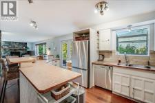 This well-kept 3-bedroom, 3-bath family home has been extensively updated and has a wonderful inviting feel. The main level features a spacious entry, a custom kitchen with a large island and breakfast bar, stainless steel appliances including a gas stove, and a living room highlighted by a stone fireplace. Mahogany hardwood floors, custom wrought iron railings, and quality finishes throughout add to its charm. The primary bedroom includes a 3-piece ensuite, with a second bedroom and a full bath completing the main floor. The lower level has been partially converted into a cozy two bedroom in-law suite with in suite washer & dryer, a walk-out glass door to a private deck—perfect for extended family or guests. Additional lower-level spaces include a family room, storage/laundry, and nook. Outside, enjoy decks, terraced yard with mature landscaping plus a paved driveway with an attached carport and detached single garage. Located close to beautiful beaches and 15 minutes from Nelson at Six Mile on the North shore. (id:6769)