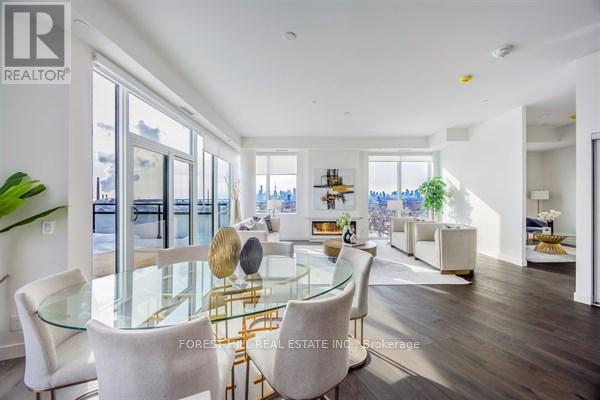 Elevated living at the iconic Queen & Ashbridge Condos. This exceptional penthouse is a true trophy asset, offering a rare 3-bedroom plus den layout with soaring ceilings, expansive living spaces, and two private terraces showcasing breathtaking panoramic views of Lake Ontario and the downtown skyline.Flooded with natural light through floor-to-ceiling windows, the open-concept living and dining areas flow seamlessly outdoors creating the perfect setting for entertaining or relaxing above the city. Upgraded Miele appliances, a spa-like primary ensuite, separate his & hers walk in closets, a versatile den ideal for a home office, and premium finishes throughout complete this unique home in the sky.Includes two parking spaces and two lockers for added convenience and storage.Residents enjoy access to world-class, five-star amenities including a state-of-the-art 5,000 sqft fitness centre, yoga and spin studios, steam rooms, rooftop Sky Club with lounge and terrace, co-working and meeting spaces, multiple guest suites, bike storage, land scapped courtyard gardens and outdoor BBQ areas.Just steps to the beach, boardwalk, Ashbridges Bay, Queen Street East shops and cafés, and convenient transit at your doorstep, this is penthouse condo living at its finest! (id:6769)
