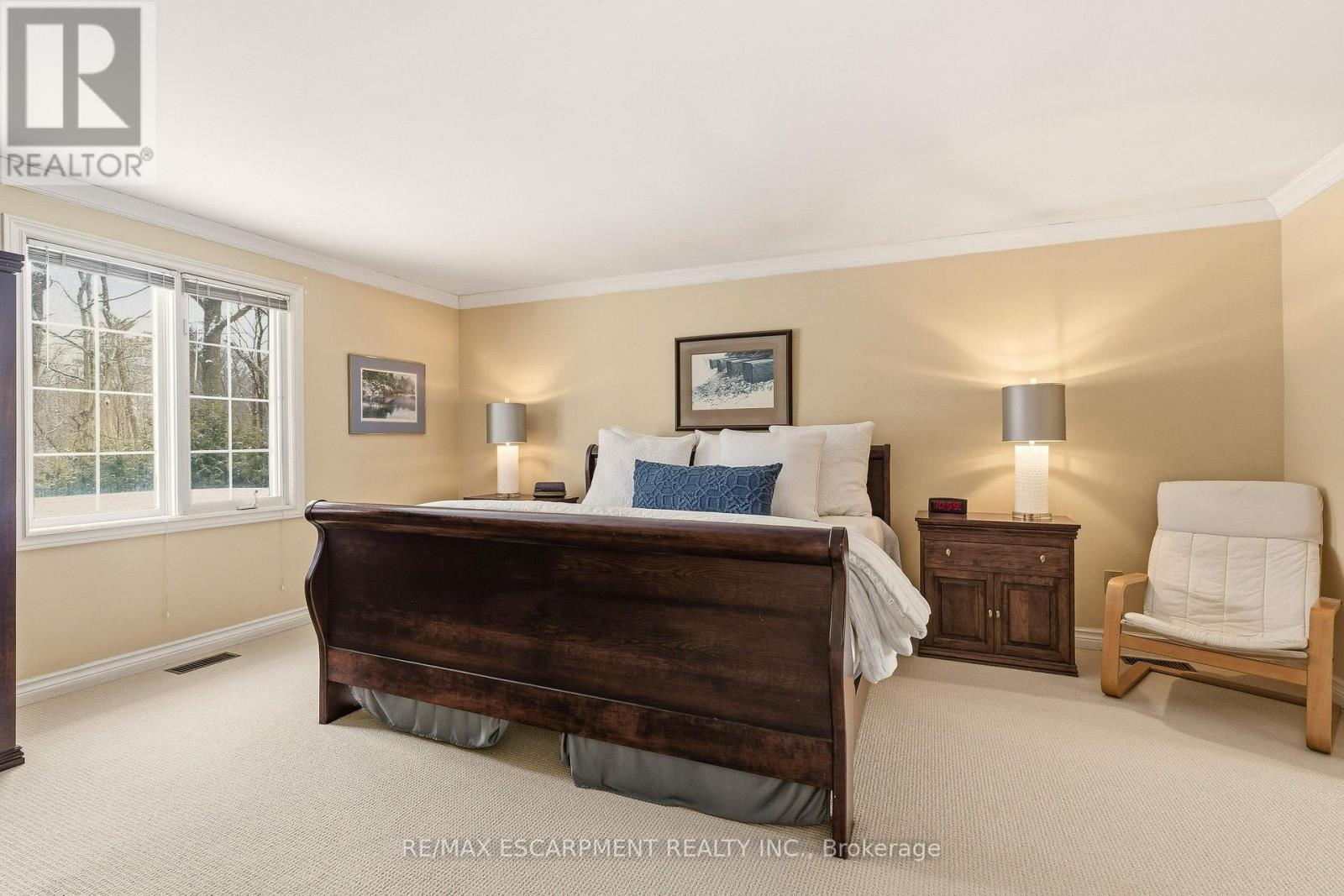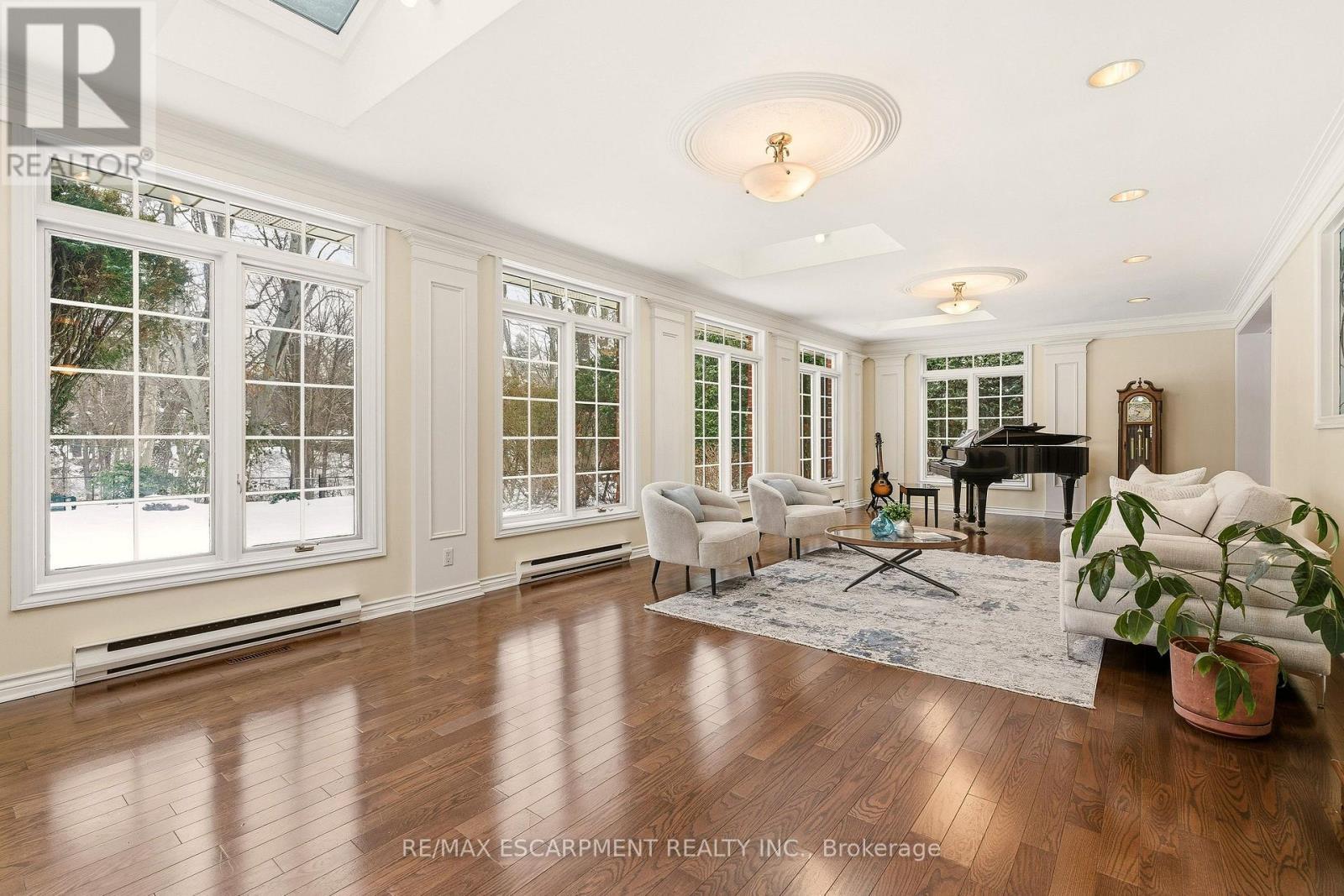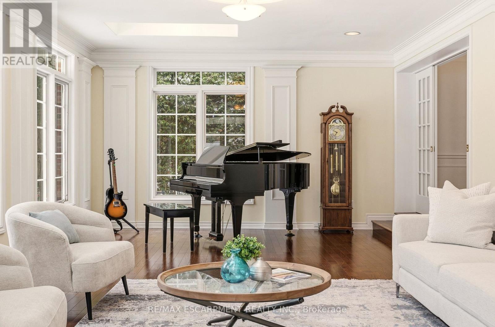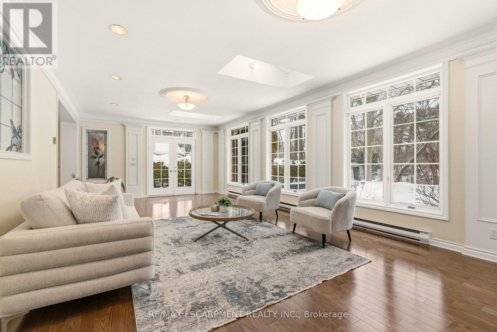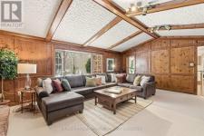 A rare opportunity on Shoreacres Road, one of South Burlington's most prestigious, tree-lined streets. Set on a spectacular ravine lot, this 3739 sq ft family home offers timeless elegance, exceptional space, and a backyard that feels like a private resort. The classic centre hall layout welcomes you with generously proportioned principal rooms, separate living and dining areas, and an open eat-in kitchen perfectly suited for everyday living and entertaining, with room to evolve with your style. The expansive sun-filled solarium, with floor-to-ceiling windows and three skylights, frames tranquil views of the lush, private grounds beyond. Step outside to a breathtaking backyard oasis surrounded by mature trees and overlooking Shoreacres Creek. Spend summer days poolside in the saltwater in-ground pool, entertain on the flagstone patio, or simply relax amid manicured gardens; it is outdoor living at its finest. Inside, the vaulted ceiling great room, with library paneling and gas fireplace, is the heart of the home, perfect for cozy evenings and family gatherings. A main-floor office with custom built ins offers an ideal work-from-home retreat. There is also a generous mudroom with separate entry. Upstairs are four spacious bedrooms, including a primary complete with a spa-like ensuite. The lower level adds an additional 795 sq ft of finished living space and features a recreation room, full bath, laundry, abundant storage, and separate stair access from the garage. Perfectly located just steps to Lake Ontario, Paletta Park, and scenic waterfront trails, and within the highly rated JT Tuck and Nelson school catchment. Minutes to shops, restaurants, GO Transit, and the QEW offering an exceptional lifestyle for commuters and nature lovers alike. (id:6769)