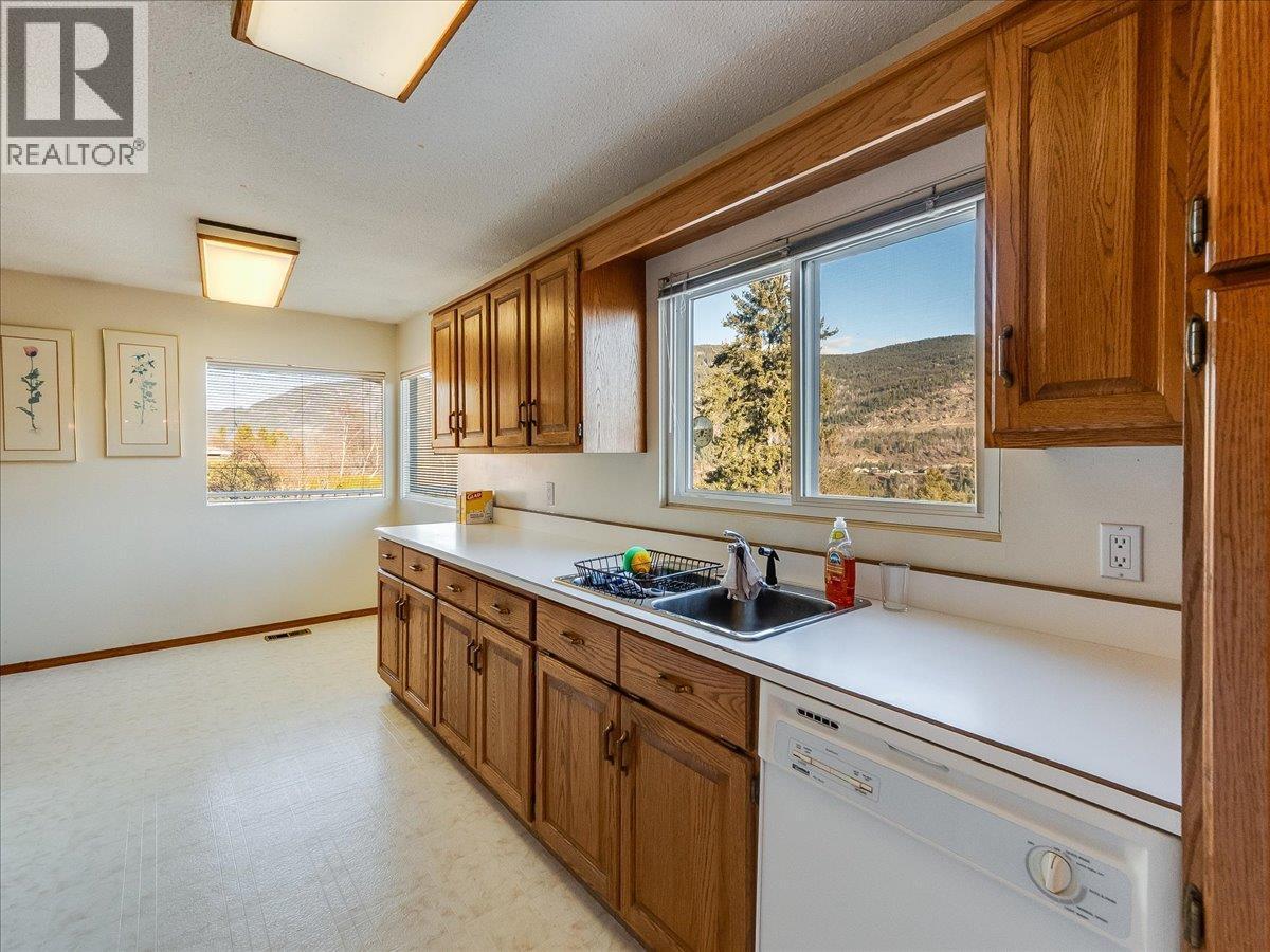 Welcome to this exceptional 5 bedroom, 2 bathroom home located in highly sought-after South Castlegar, where panoramic valley views take center stage. The main floor offers three spacious bedrooms, including a generous primary suite with dual closets. The bright and inviting living room features a huge picture window perfectly framing the breathtaking valley scenery, filling the space with natural light. Enjoy both a dining room and a cozy breakfast nook just off the oak kitchen — ideal for family living and entertaining alike. A full 5-piece bathroom with dual sinks completes the main level. The full daylight walk-out basement expands your living options with an ultra-spacious 2 bedroom suite. This lower level includes a massive kitchen, full bathroom, two large bedrooms, and plenty of additional living space — perfect for extended family, guests, or mortgage-helper potential. Comfort is covered year-round with a gas furnace, heat pump, and gas hot water tank. Step outside to truly appreciate what makes this home special. The full-length deck off the back of the home showcases the sweeping valley views and provides the perfect setting for morning coffee or evening relaxation. Below, a full-length covered patio offers additional outdoor living space in any season. This is a rare opportunity to own a versatile, view-filled home in one of South Castlegar’s most desirable neighborhoods. (id:6769)