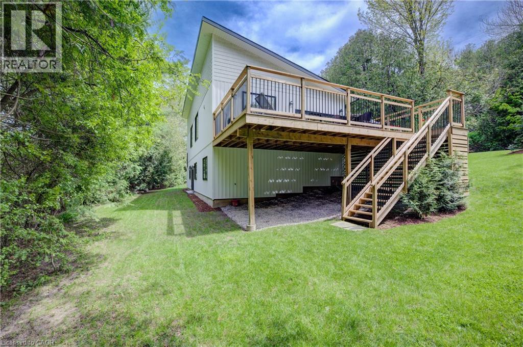 071 Rivers Edge Drive, West Montrose A Rare Riverside Retreat on a Private Acre. Welcome to your newly built (2023) dream home and cottage lifestyle on the Grand River. Nestled on a private 1-acre lot in the charming community of West Montrose, this residence is the perfect blend of luxury, comfort, and nature. The front yard and agricultural zoning provides space for a circular driveway and an additional build. Step inside and experience bright, airy interiors with expansive, picturesque windows that frame stunning views of the outdoors. Elegant hardwood flows throughout the home, enhancing the open-concept design and natural warmth. The kitchen is spectacular, outfitted with premium appliances, a large island, and thoughtful finishes—open concept—perfect for hosting or enjoying quiet evenings with loved ones. The entertaining continues through the patio doors to an expansive deck. Retreat to the sound-enhanced primary suite, complete with a walk-in closet and a spa-inspired ensuite bathroom. The lower walkout features a spacious family room and opens to your outdoor oasis. Designed for families of all sizes, with three well-appointed bedrooms, 5 piece bath with heated floors, laundry room, and a heated utility room workshop. With full sized windows and nature views this lower level seamlessly engages the outdoors with full sized patio doors. Enjoy seamless access to the Grand River for kayaking, along with nearby walking trails. The triple-door, heated 807 sqf garage is ideal for car lovers or hobbyists. Below half of the garage you will find a large storage area. Beyond beautiful design, the home features modern, low maintenance mechanicals for peace of mind—including a new septic system, air exchanger, iron filter, UV water filtration system, and a 230-foot well delivering excellent water. This is more than a home—it's a lifestyle. Whether you're seeking tranquility, adventure, or the ultimate place to gather, 1071 Rivers Edge Drive offers it all. (id:6769)