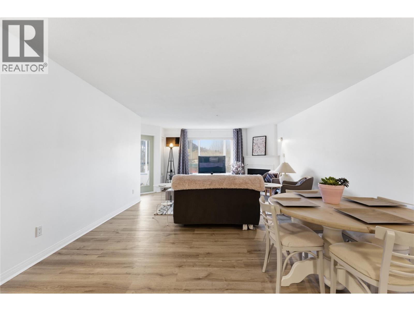 This updated 55+ condo offers a comfortable and practical lifestyle in the heart of downtown Vernon. Situated on the quiet side of the building, this one-bedroom plus ""bonus room"" home has been nicely refreshed to provide a move-in-ready space. The kitchen features new cupboards, counters, and stainless steel appliances, while the bathroom has been fully updated for a clean, modern look. With new flooring, fresh paint, and modern fixtures throughout, the home feels bright and well-cared-for. A cozy gas fireplace in the living area adds a touch of warmth. One of the most inviting features of this home is the glassed-in deck. It serves as a wonderful sunroom where you can enjoy your morning tea or tend to your indoor plants year-round, regardless of the weather. For added convenience, the unit includes its own in-suite laundry, a dedicated storage locker, and a secure underground parking stall. If you have a furry companion, you’ll be glad to know that the building allows for one indoor cat. The location is truly the highlight for anyone looking to simplify their daily routine. It is a flat, easy walk to everything you need—from grocery stores and pharmacies to local restaurants and the library. Being so close to the Seniors Centre makes it easy to stay connected with the community and participate in local activities. This is a solid home that offers security and peace of mind for those looking to enjoy a convenient downtown lifestyle. (id:6769)
