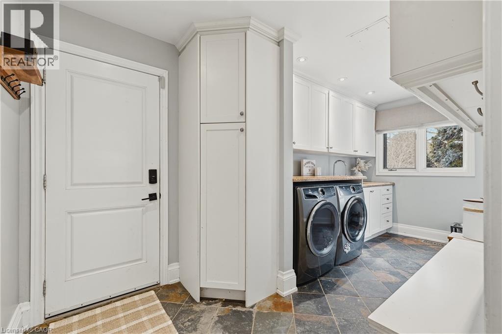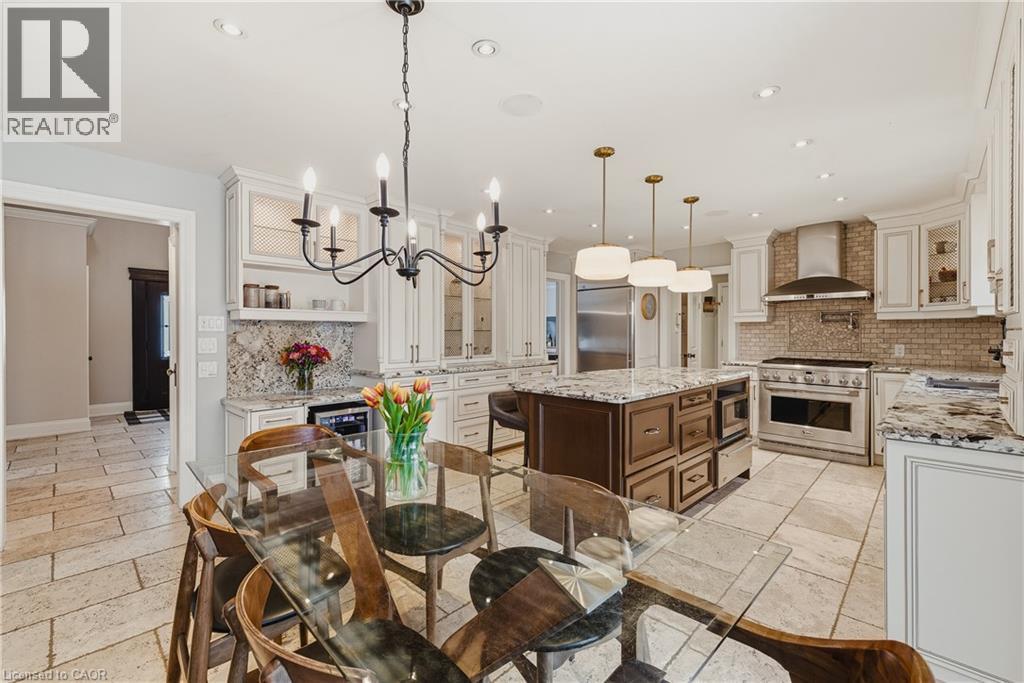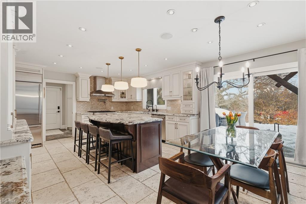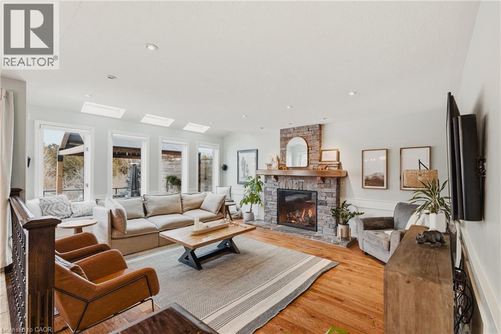 Welcome to life in West Montrose, where privacy, space, and a more considered pace of living come together just minutes from the city. Set on over half an acre in the heart of Old Order Mennonite countryside, this beautifully updated home offers a rare balance of peaceful surroundings and everyday convenience, with easy access to Waterloo, Elmira, Elora, and Guelph. A timeless stone exterior, mature trees, and an extended driveway create a strong sense of arrival. Inside, a grand two storey foyer with a curved staircase introduces the home with scale and quiet sophistication. The main floor moves easily between everyday living and entertaining, with a bright front den, formal dining room, and an open kitchen and living space filled with natural light. The kitchen is both refined and highly functional, centred around a generous island with seating, extensive cabinetry, a coffee station, and an oversized gas range, positioned just off the garage and mudroom entry. Skylights and a wall of windows define the sunken living room, where a gas fireplace and built in reading bench create a warm focal point. Upstairs, four bedrooms offer well proportioned space with hardwood flooring throughout. The primary suite is set apart, featuring an ensuite with heated floors, a soaker tub, glass shower, and a connected dressing room or office with skylights leading to a walk in closet. The finished lower level adds versatility with a wine cellar, a fifth bedroom with cabinetry, sink, and built in appliances, ideal for guests or extended living, along with a spacious recreation area and full bathroom. Outdoors, the property is designed for both entertaining and retreat, featuring a 44x22 saltwater pool, expansive deck, pergola, landscape lighting, an irrigation system for the lawn and gardens, and an invisible fence system. A rare opportunity to experience refined living in one of the region’s most sought after settings. (id:6769)