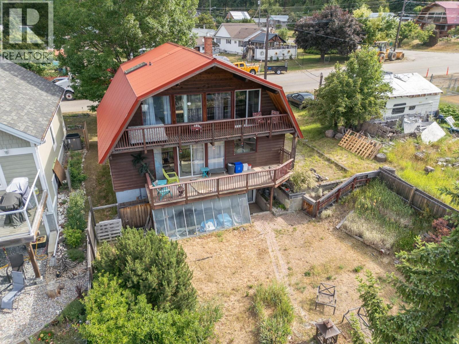 Nestled opposite Riondel Golf Course and the lake, this custom-built home offers captivating views of mountains as well as the beautiful Kootenay Lake. With 4 bedrooms and 3 bathrooms spread over three levels, there's ample space for relaxation and entertainment. The spacious master suite features patio doors for stylish unwinding. Wood heat ensures coziness in cooler months, while two covered decks and a charming yard invite outdoor enjoyment. The lower level walkout has its own bathroom, and plumbing in place for a potential kitchen of you want to develop the space into a second suite for family or a revenue opportunity. A small garden area and RV parking space add to the outdoor appeal, providing opportunities for gardening and outdoor enthusiasts alike. Minutes from Riondel Campground and Beach, and close to groceries and cafes in Crawford Bay, this home offers convenience and tranquility in a prime location. Experience small town lake living at its finest! Call your realtor and book a showing! (id:6769)