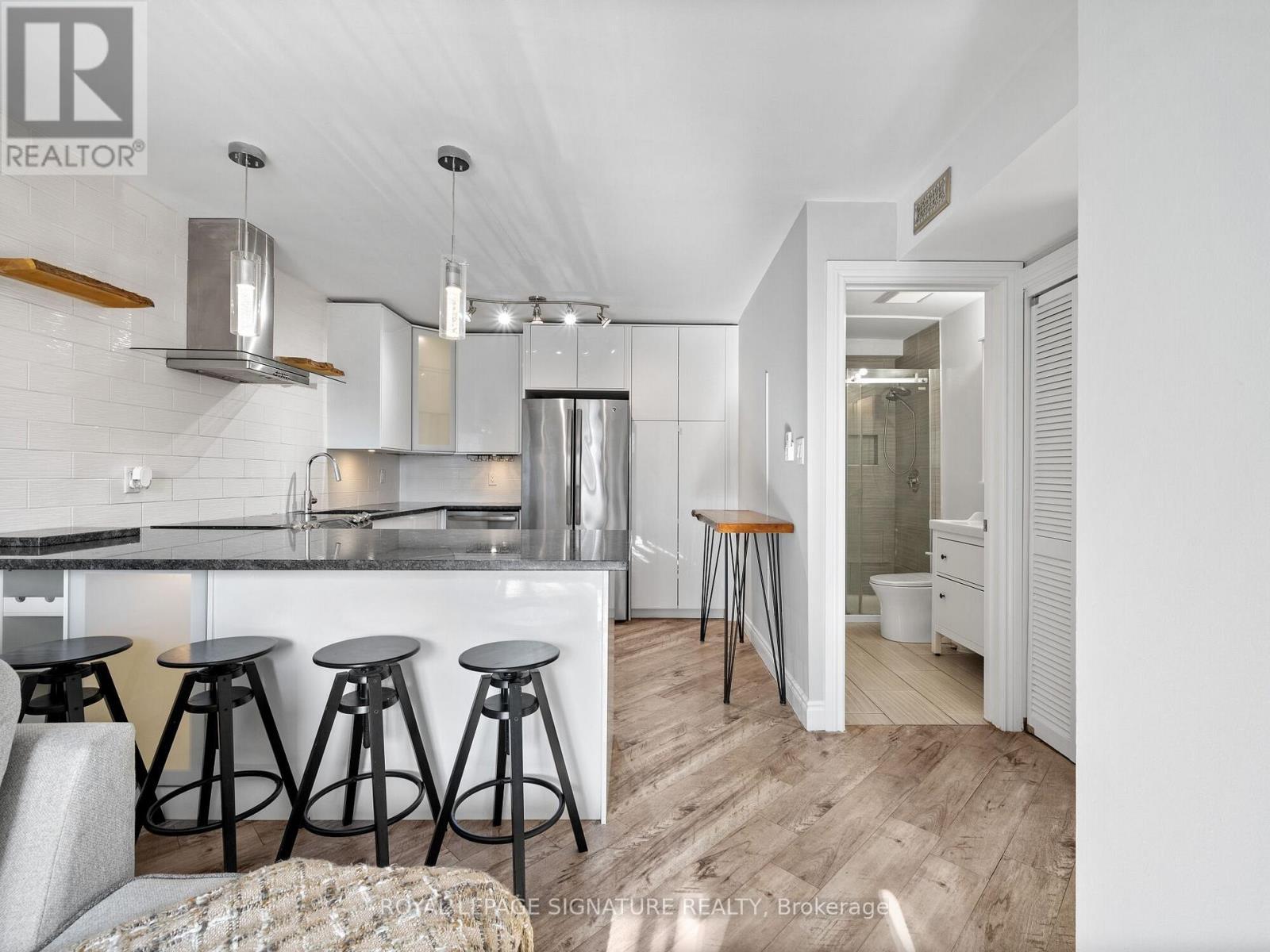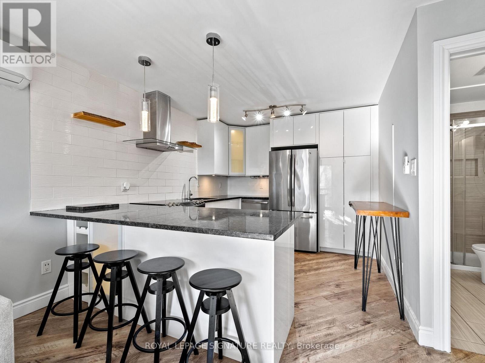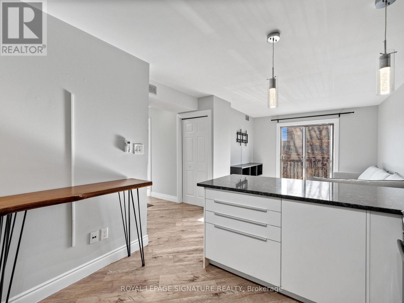 Beautifully updated 2-bedroom, 1-bath condo featuring a bright open-concept layout ideal formodern living. The living and dining area flows to a charming Juliette balcony, filling thespace with natural light. The sleek kitchen offers stainless steel appliances, granitecountertops, and a generous peninsula with seating for four, perfect for everyday living orentertaining. Convenient in-suite laundry is neatly tucked away. Both bedrooms feature windowsand closets, complemented by a stylishly renovated bathroom with glass shower. Fresh paint andlaminate flooring throughout make this home completely move-in ready. Located in the heart ofHamilton, just minutes to public transit, parks, schools, shops, and restaurants. Ideal formedical professionals with close proximity to Hamilton General Hospital, Ron Joyce HealthCentre, and quick access to St. Joseph's, Juravinski, and McMaster hospitals. Extras:exclusive parking space, dedicated storage locker, water, exterior maintenance, and buildinginsurance - all included in condo fees. An excellent opportunity for first-time buyers,downsizers, or investors. (id:6769)