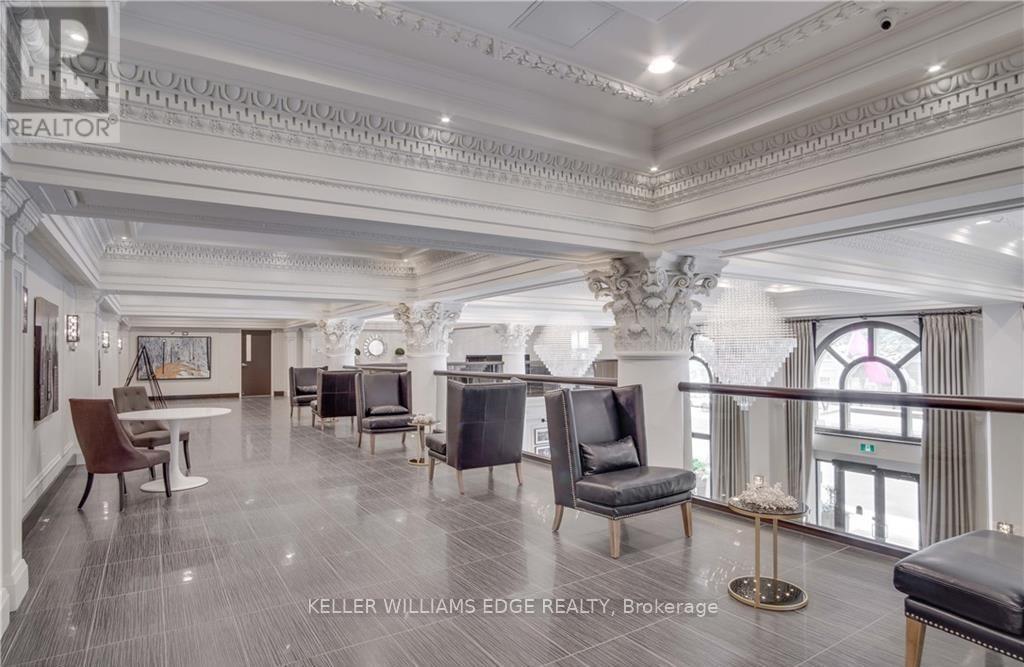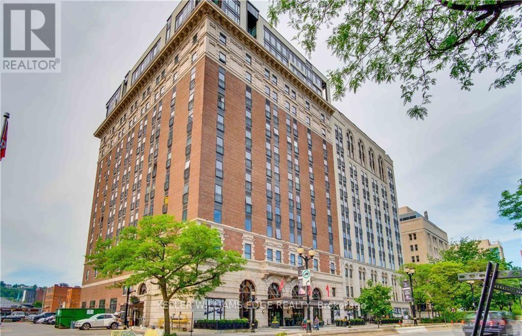 Experience modern luxury in this beautifully furnished 2-bedroom, 2-bathroom corner suite at the iconic Royal Connaught, where historic charm blends seamlessly with contemporary living in the heart of downtown Hamilton. This fully furnished unit is ideally located near hospitals, universities, the GO Station, Art Gallery of Hamilton, Hamilton Place, Jackson Square, Hamilton Farmers' Market, and the vibrant shops and restaurants of James Street North. This North and West-facing corner suite features expansive windows and panoramic city views, filling the open-concept living and dining area with natural light. The modern kitchen offers quartz countertops, stainless steel appliances, and a breakfast bar. The primary bedroom includes a queen bed, walk-in closet, and private ensuite. Thoughtfully curated furnishings (removals available upon request) and engineered hardwood floors enhance the space. The unit also features smart home technology, including a smart thermostat, lighting, and plugs, along with the convenience of in-suite laundry. The beautiful rooftop garden and outdoor terrace located on the same floor as the unit, making it incredibly convenient to step out and enjoy the outdoor fireplace or host a BBQ with friends and family. Residents also have access to a fitness centre, movie theater, party room, and media room. Rent includes one indoor parking space and a private locker on the same floor. Tenant is responsible for water, heat, hydro, and internet. See the full list of furnished items in the supplements. (id:6769)