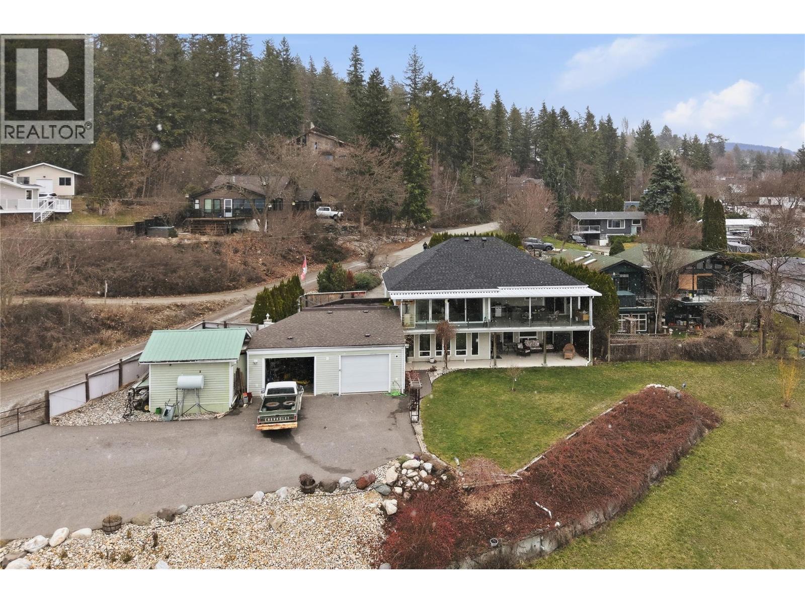 LAKE VIEW! LAKE VIEW! Just over 3.5 Acres In Town | Unobstructed Lake Views | Workshop w/ Hoist | Subdivision Potential A rare opportunity to own private acreage in town with spectacular lake views and endless potential. Welcome to this incredible 3.6-acre property offering breathtaking, unobstructed lake and mountain views right in town. The home features rancher-style main floor living with a daylight walk-out basement, covered deck and basement with suite potential that is perfectly positioned to capture the stunning lake views through large picture windows. A drive-through driveway and double heated garage on the main level make this home both practical and accessible. The property includes a large, paved backyard area along with a detached 2 door heated garage with a workshop attached with the hoist this makes this property ideal for mechanics, hobbyists, or storing recreational equipment. Roof replaced in 2025; radiant heating system and heat pump ( Approx 2 years); hot water tank is approx. 5 years old The partially fenced acreage provides space for a hobby farm, ,or possible subdivision potential for future value. Outdoor enthusiasts will love being near hiking trails and all the outdoor recreation at your fingertips! Located in the highly desirable Appleyard subdivision on a quiet private no-through road. With just a 5-minute drive to Canoe beach, walking distance to schools, and close to amenities and town services. Measurements by IGUIDE are approximate (id:6769)