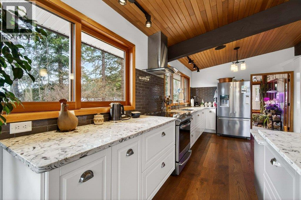 WELCOME TO YOUR PRIVATE SHUSWAP ESCAPE - 20 incredibly private acres backing onto Crown Land, with breathtaking views of Mount Ida & the city below. This rare property combines peaceful rural living, functionality, & stunning scenery in one exceptional package. Well-maintained and updated through the years this 5 bedrm, 3 bth home is warm and inviting. The heart of the home is the main living space, featuring an open-concept kitchen with island, vaulted ceilings, and floor-to-ceiling windows that perfectly frame the views. A cozy wood-burning brick fireplace creates the ideal setting for relaxing on chilly evenings while enjoying the natural beauty outside. The lower level offers flexibility with additional bedrooms, a spacious family room and a convenient kitchenette - ideal for guests or future in-law suite potential. Outside enjoy a fully wired & insulated shop complete with hoist, gated entry for privacy and security, fencing & cross-fencing for livestock, greenhouse & garden areas, fruit trees, berries, plus dedicated wood storage and generator room with auto-start capability to keep the entire property running. Lovingly cared for and organically maintained -chemical and pesticide free for over 37 years - producing up to 9,000 garlic bulbs, offering agricultural potential. A rare opportunity to own a private, self-sustaining acreage close to town, usable land, and endless possibilities — all while backing onto Crown Land for ultimate privacy and recreation. (id:6769)