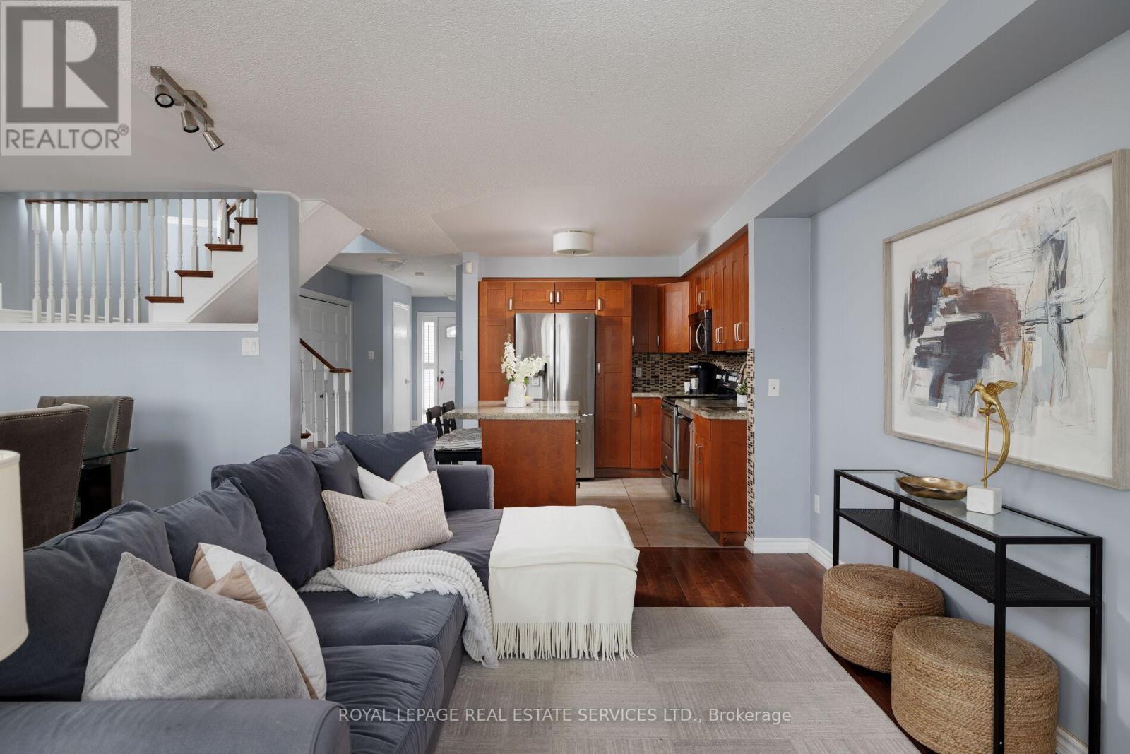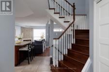 Beautifully updated 3-bedroom, 3.5-bathroom townhome with finished basement in sought-after West Oak Trails, backing onto green space and nestled in a quiet, family-friendly complex within a top-rated school catchment. Surrounded by mature trees and bordered by the green space of two school grounds, this complex offers exceptional privacy and a true nature setting. Enjoy a landscaped front yard with a large shade tree and a private backyard with a partially covered two-tiered deck-perfect for outdoor entertaining. Walk to parks, schools, and scenic trails along Sixteen Mile Creek, with Glen Abbey Golf Club, Dorval Crossing, shopping, and quick QEW access just minutes away. Offering a spacious layout plus the finished basement, this move-in-ready home features hardwood floors and oversized tile on the main level, and wide-plank laminate flooring upstairs and in the basement. The renovated kitchen (2016) includes shaker cabinetry, granite countertops, under-cabinet lighting, a centre island with a breakfast bar, and stainless steel appliances, including a newer fridge (2025) and dishwasher (2024). Bright, open-concept living and dining areas highlight large windows, treetop views, a gas fireplace, and a walkout to the deck and private yard. The main floor also offers a powder room and laundry area. Upstairs features 3 sun-filled bedrooms and 2 full bathrooms, including a primary retreat with an updated 3-piece ensuite (2016) and a walkout to a private deck overlooking green space. The finished basement adds a large recreation room with pot lights, a modern 4-piece bath, and ample storage-ideal for families, professionals, or investors seeking a turnkey Oakville townhome. (id:6769)